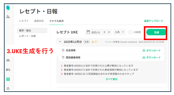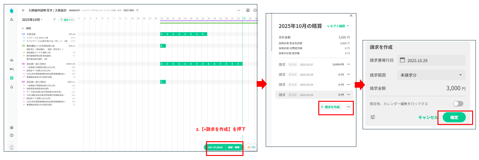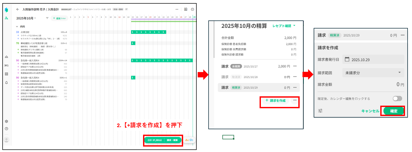 ※「保険証記号」「保険証番号」のみの登録変更の場合は2.【請求を作成】の操作は不要です