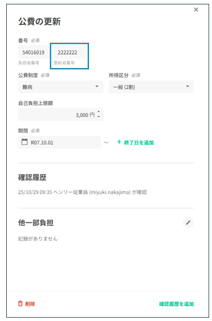 生活保護の医療券発行待ちで、請求確定後に受給者番号等を入力した場合