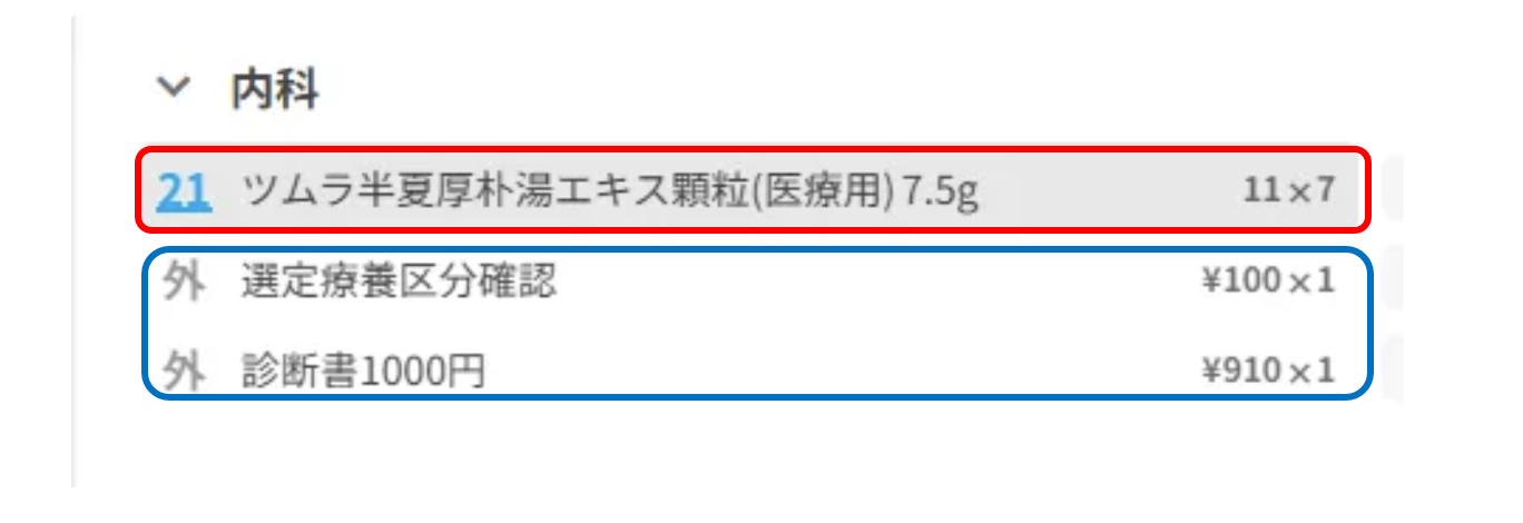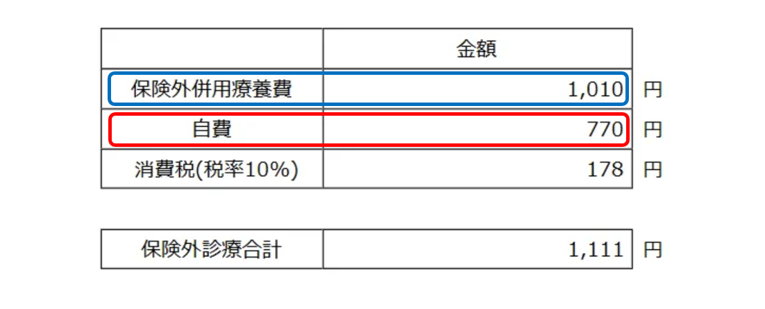 設定で登録した保険外診療の項目が領収書(請求書)では全て保険外併用療養費欄へ表示されます