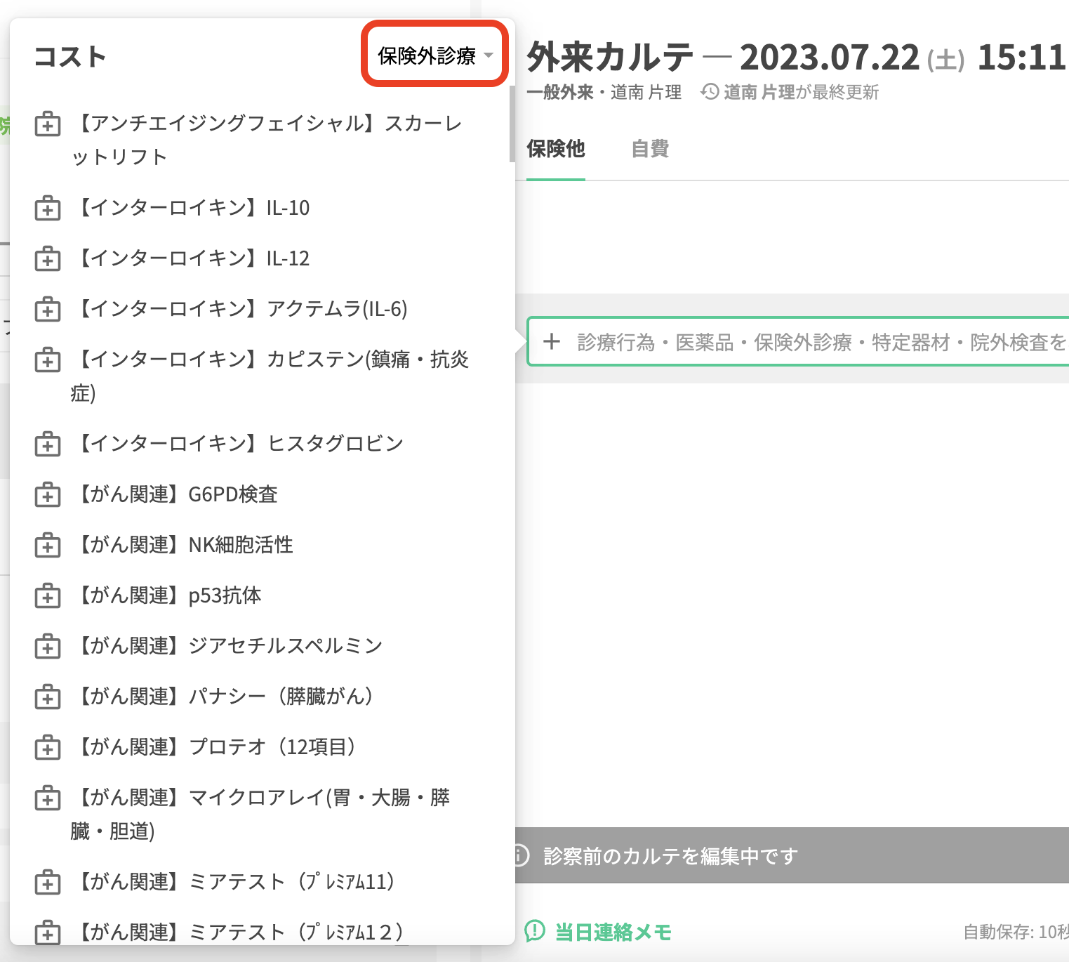 コストカレンダー(コスカレ)で保険外診療項目を入力しようとするとき