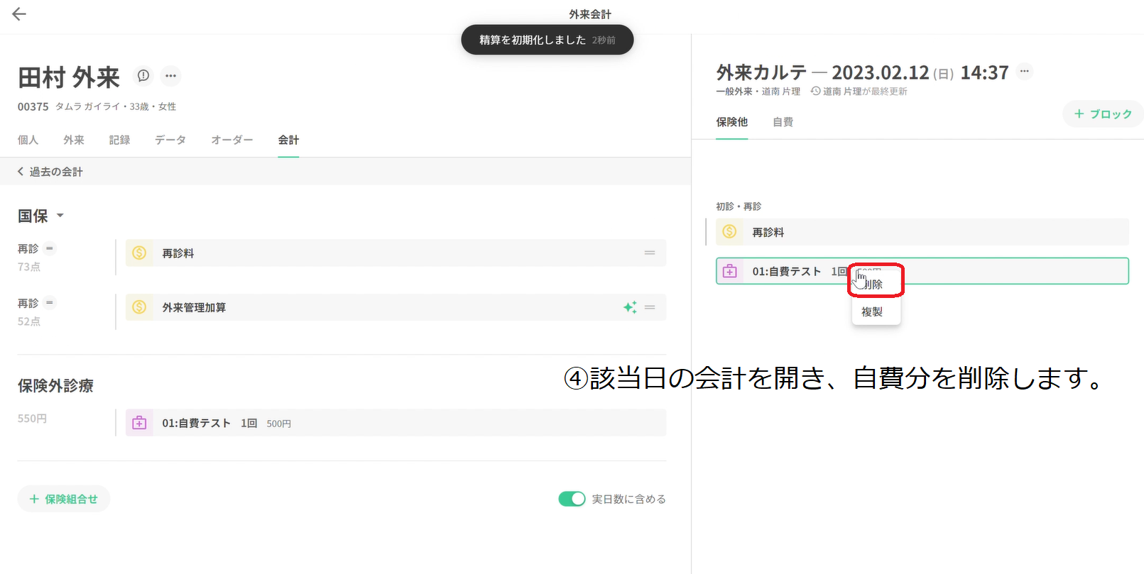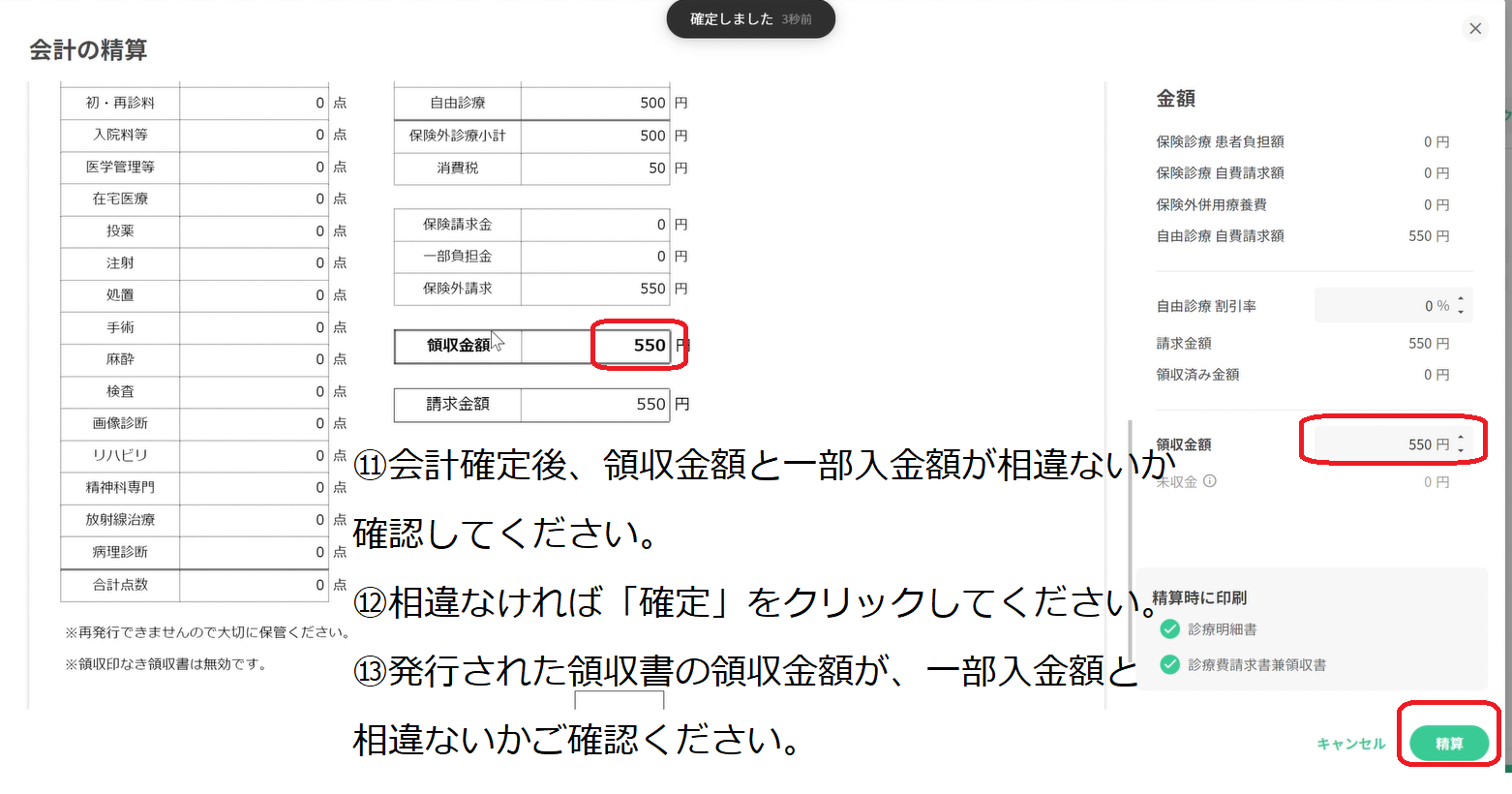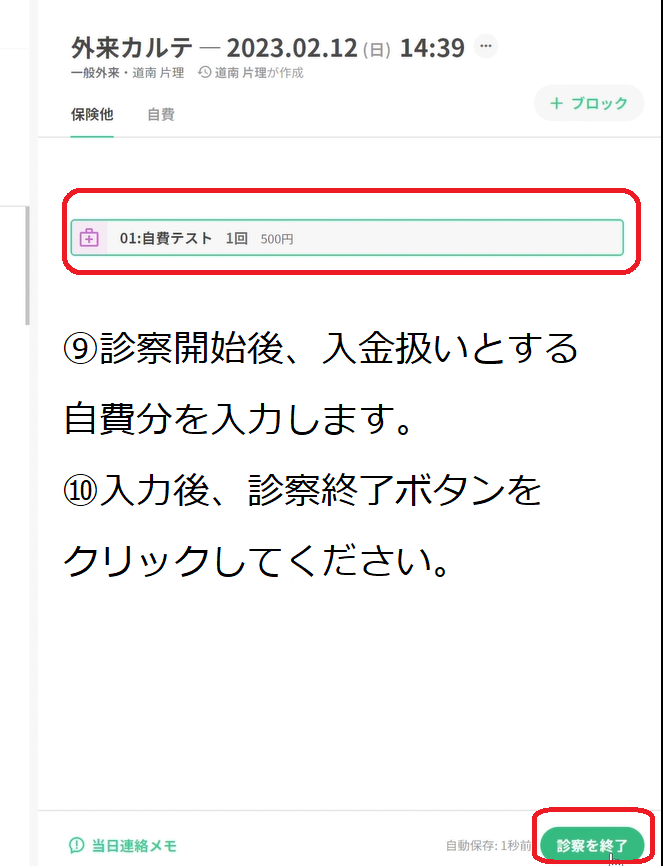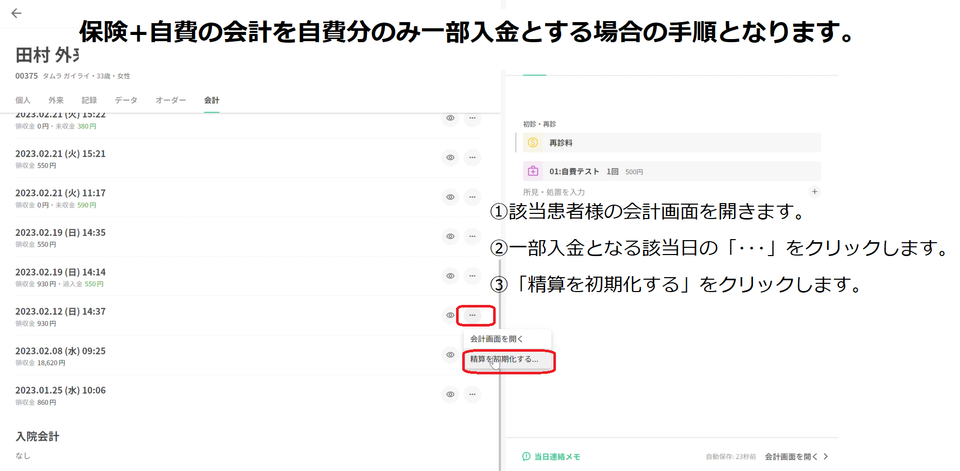 自費のみ一部入金の手順となります。 以下、画像をご参照ください。