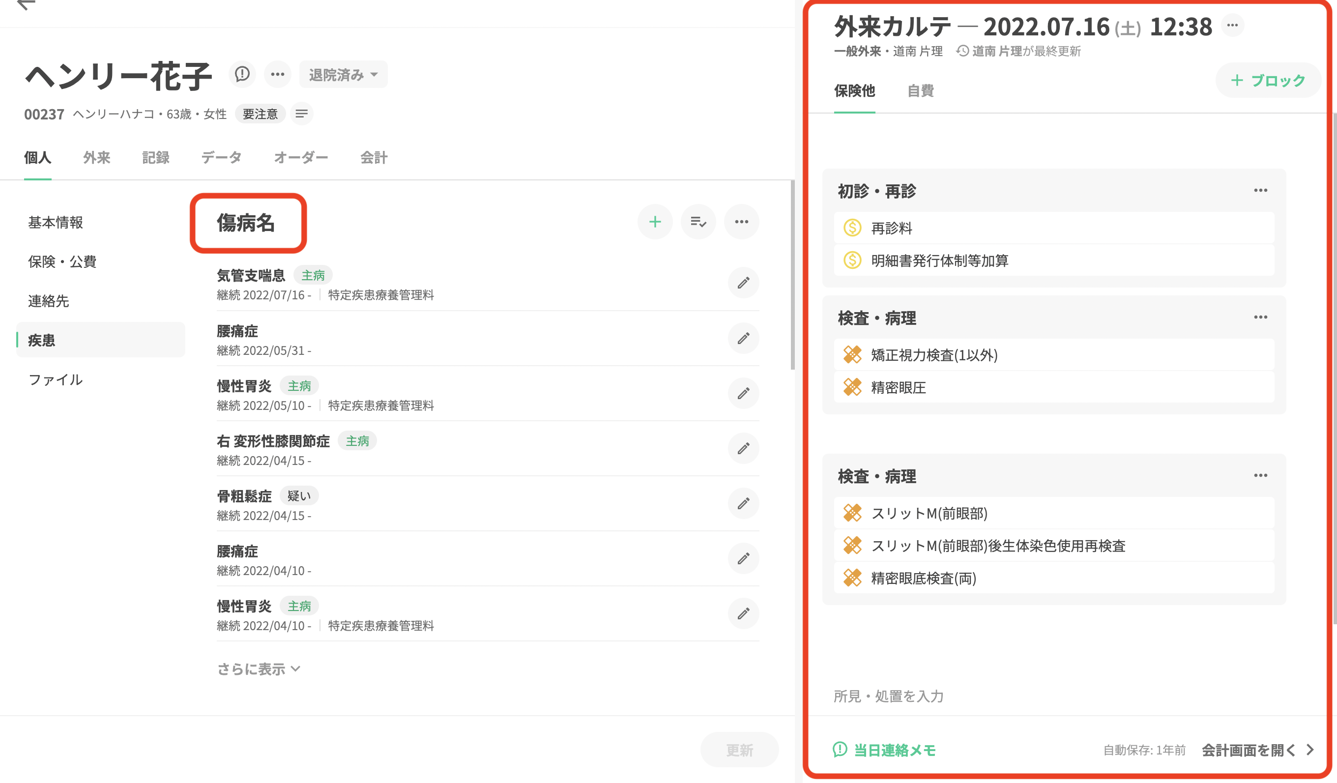 傷病名とカルテの同時閲覧について