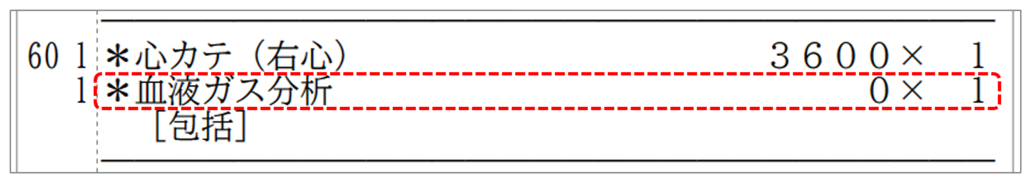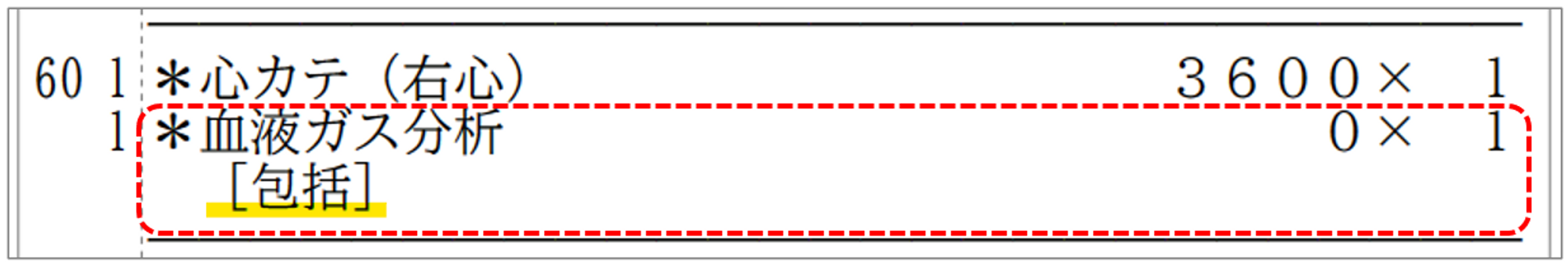 例:心カテ(右心)に血液ガス分析が包括されている場合