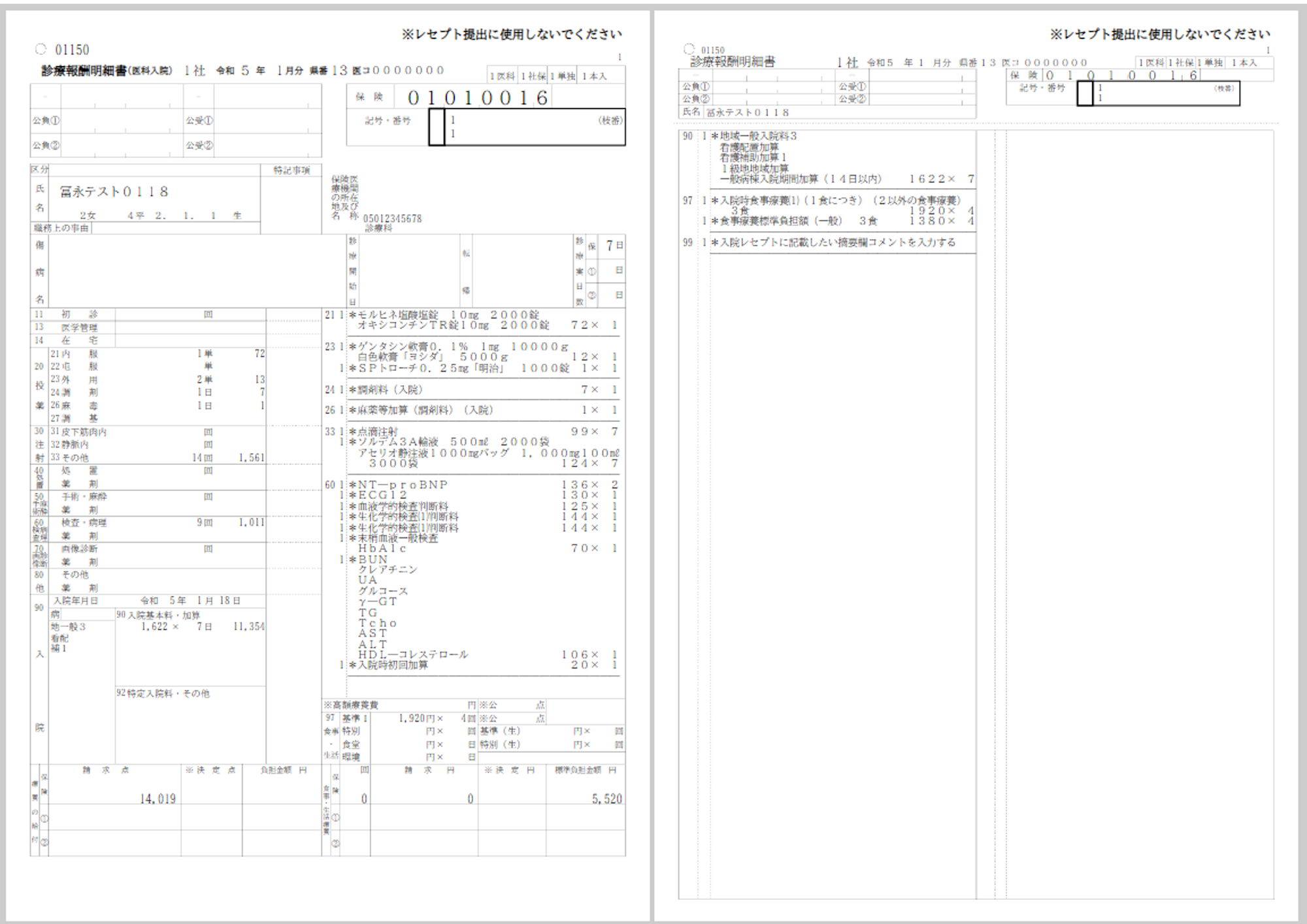 入院のレセプトプレビュー時に包括項目を含む点検用レセプトが表示されます。