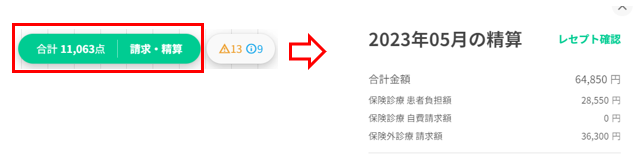 コストカレンダの「請求・精算」ボタンを押すと、概算が確認できます。