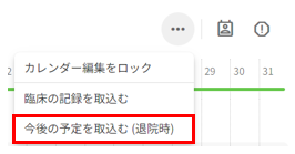 コストカレンダの「今後の予定を取込む(退院時)」を選択すると、退院日までのオーダーが即時に取り込まれます。
