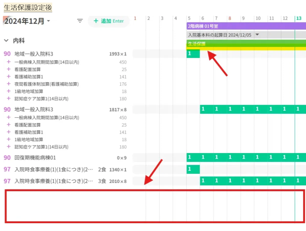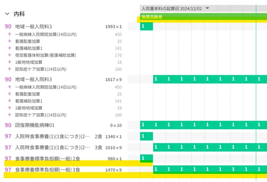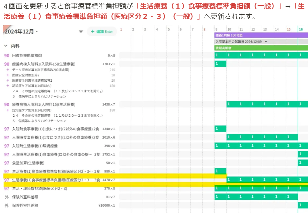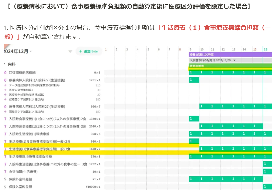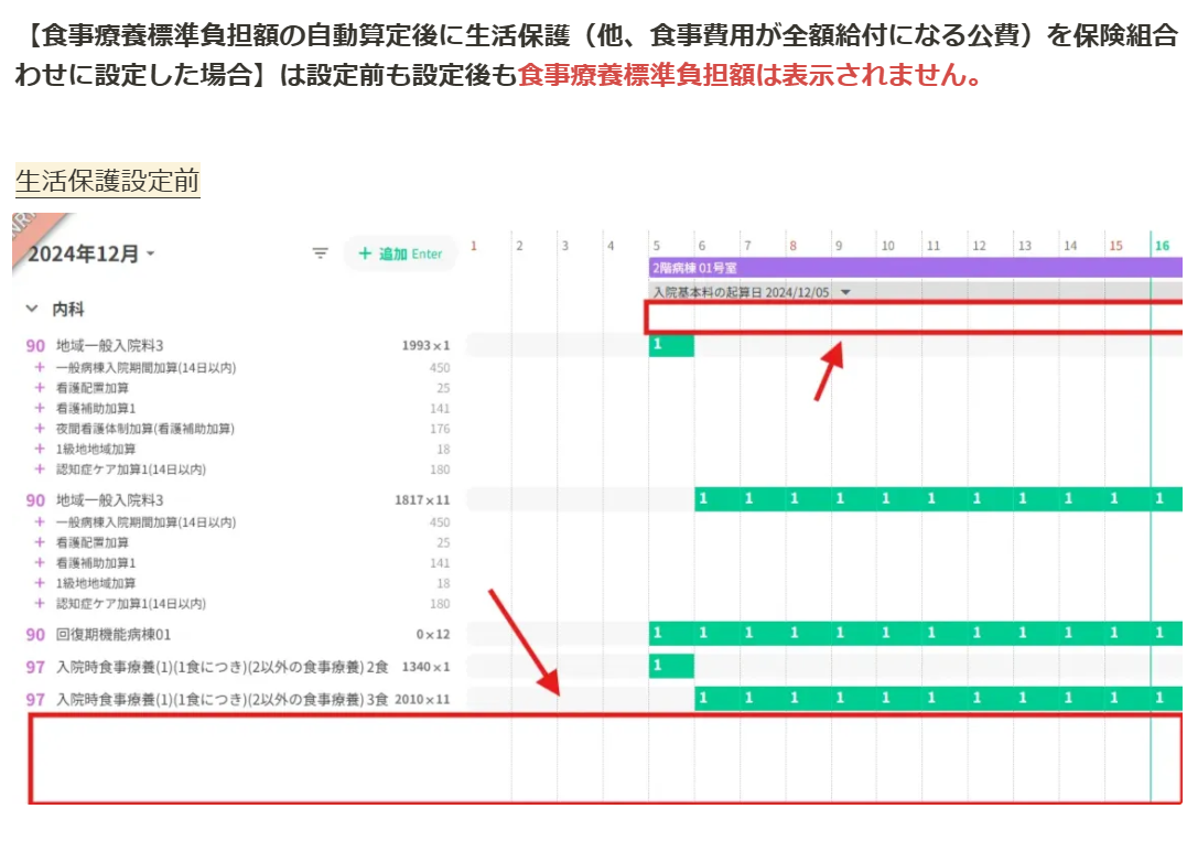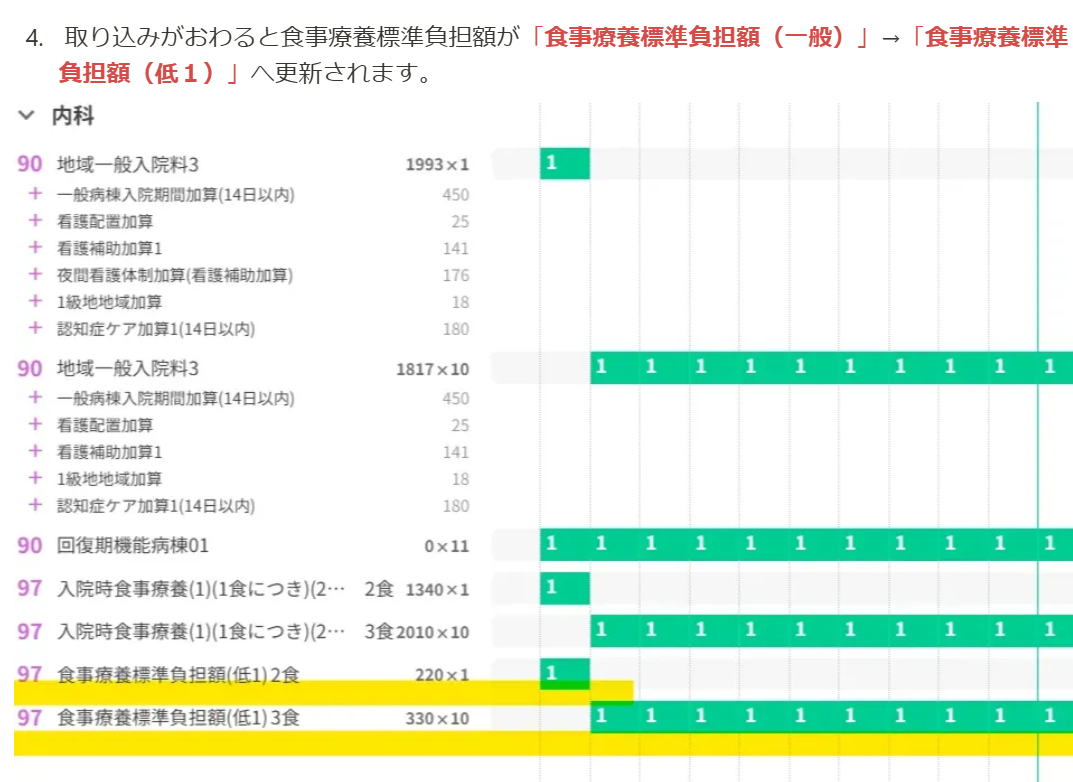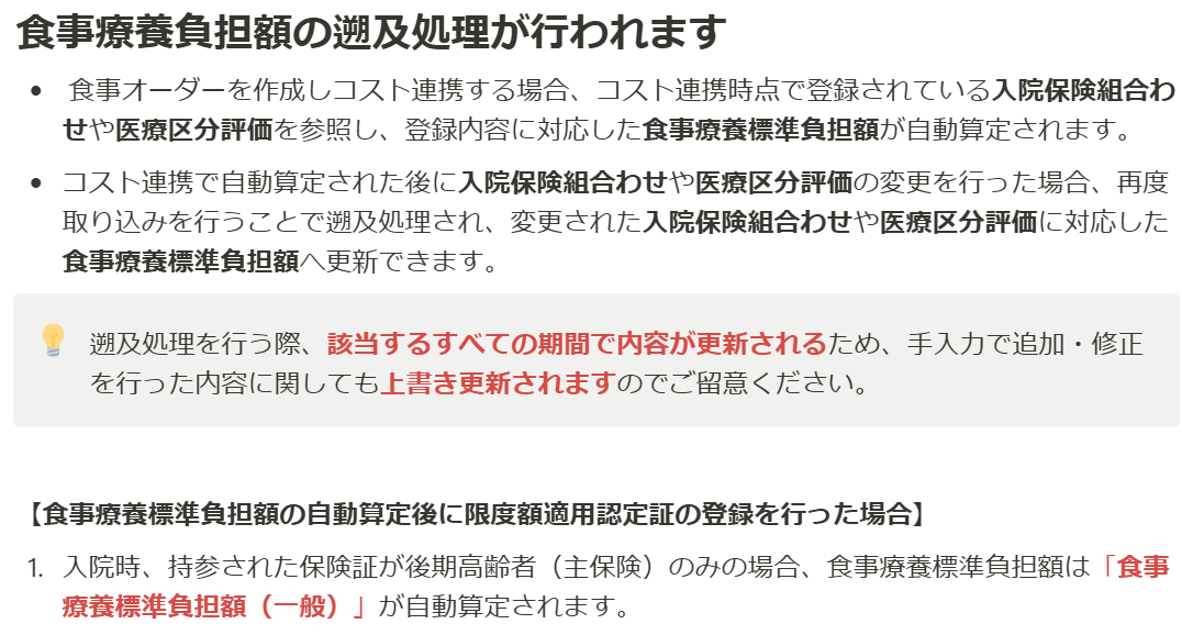 入院保険組み合わせや医療区分評価が変更になった際の食事負担額計算の仕様について
