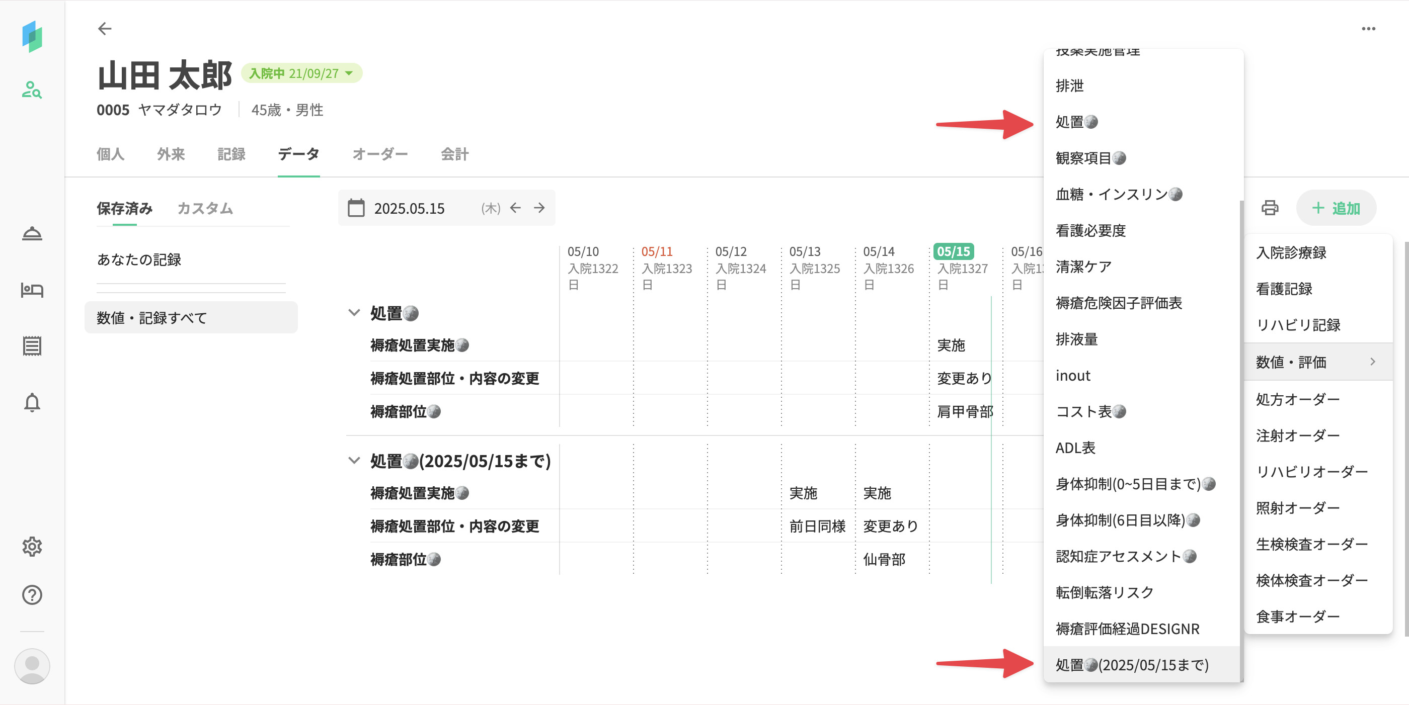 データタブの選択肢として、現在有効な項目と終了済みの項目の両方が表示されており、終了済みの項目についても入力ができるようになっていました