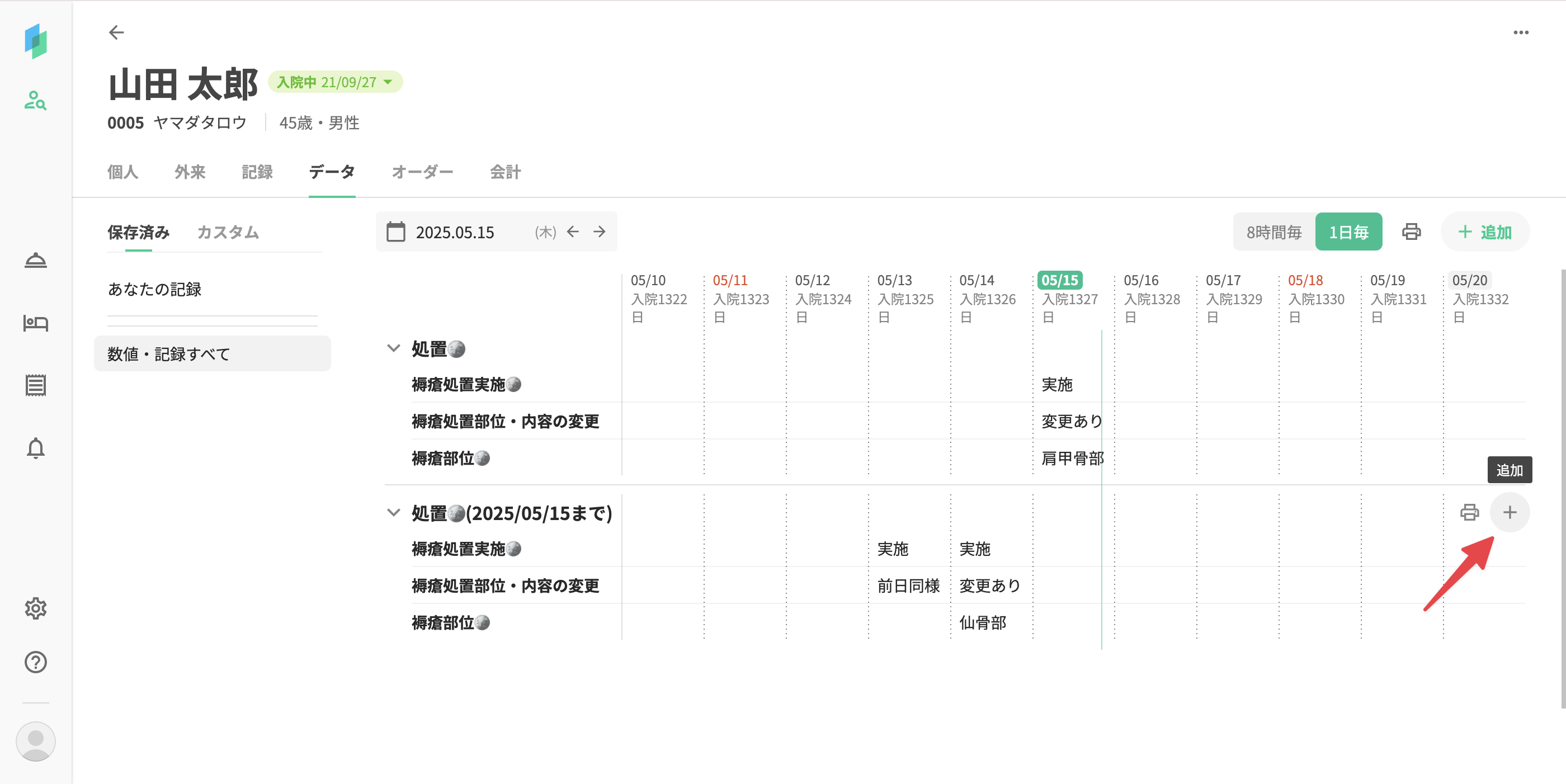 また、データタブ上では、終了済みの項目については「印刷」のみ可能となり、「追加」はできなくなります