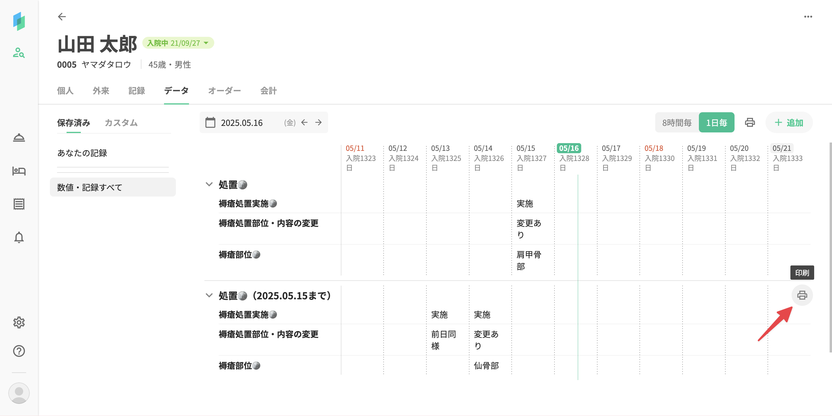 また、データタブ上では、終了済みの項目について「印刷」と「追加」の両方が行える状態でした
