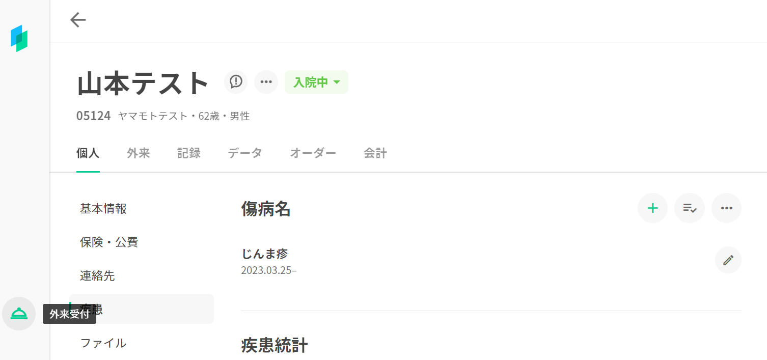 ※スタッフアカウントの場合は、追加した傷病名は未承認ステータスになりますので、医師の承認が必要となります。