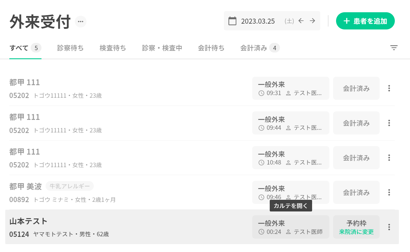 3.当該患者のカルテを開きます