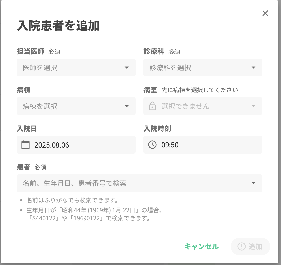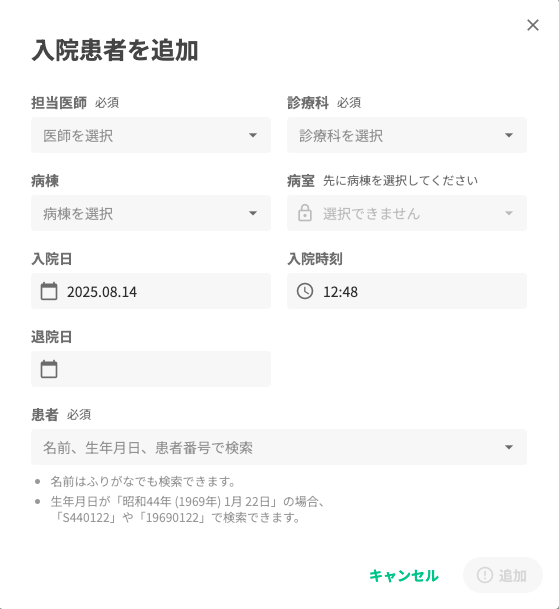 退院予定日が決まっている入院や、すでに退院済みの入院を登録する際、今までは入院を登録した後で別途退院日を登録する必要がありました