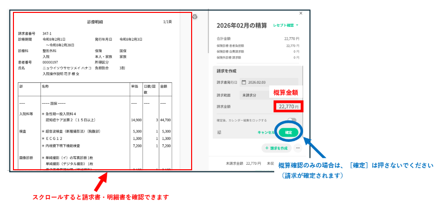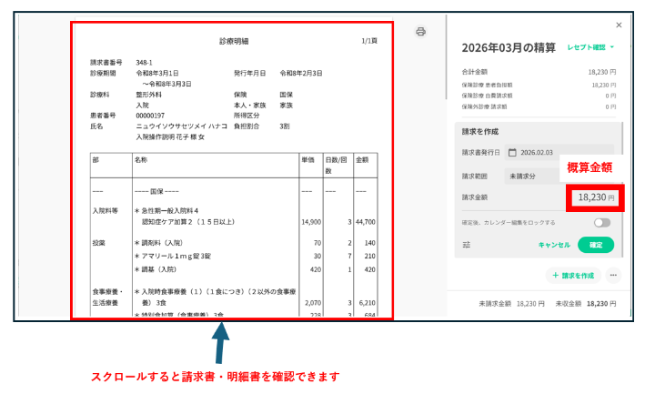 作成された請求内容から、概算金額を確認します