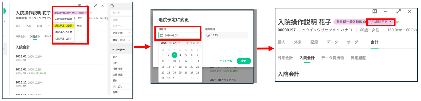 入院情報で「退院予定日」を登録します