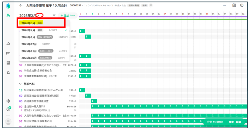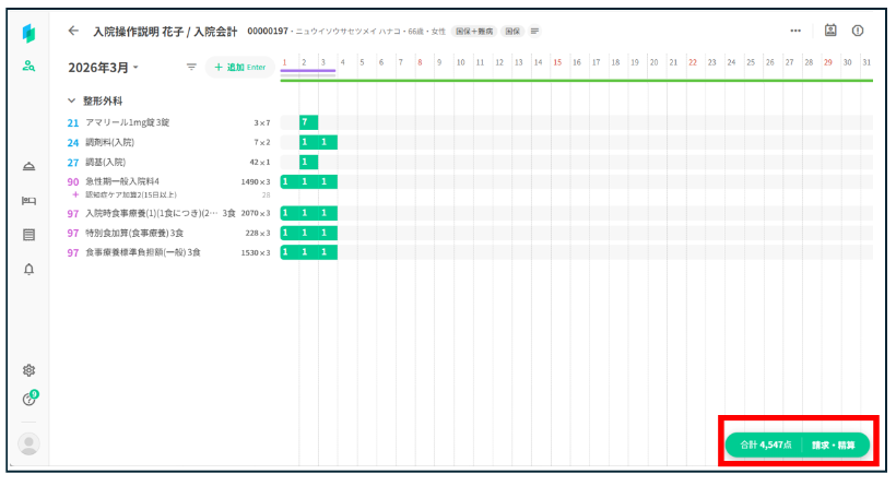 ② 翌月分を含めた概算を確認したい場合(3/3退院予定の場合)