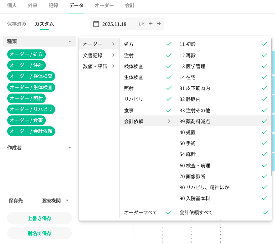 過去に実施した診療行為が時系列で直感的に確認しやすくなります