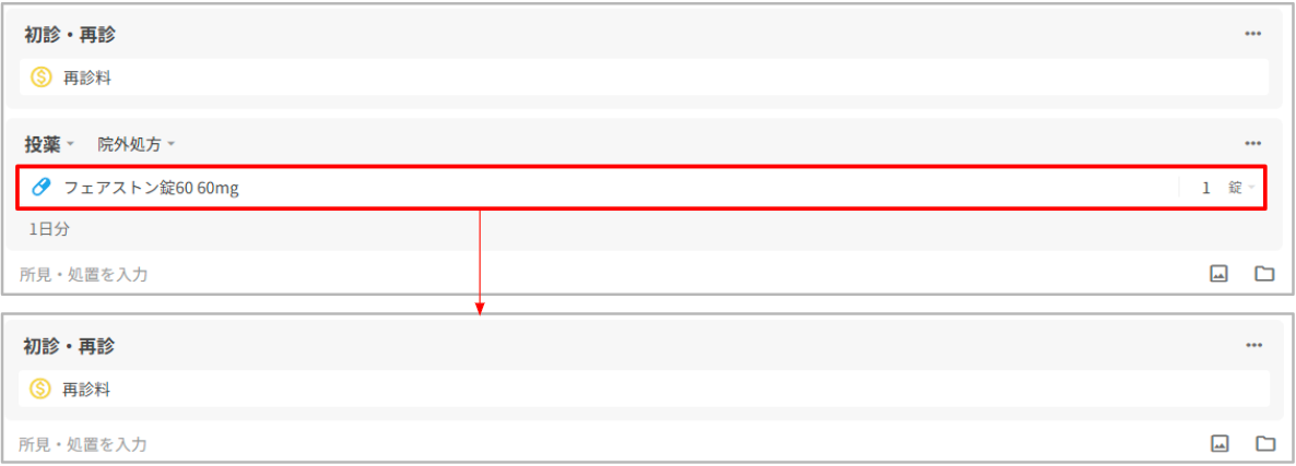 2.複製により新規追加された外来カルテセットに登録してある、廃止薬剤を削除します。