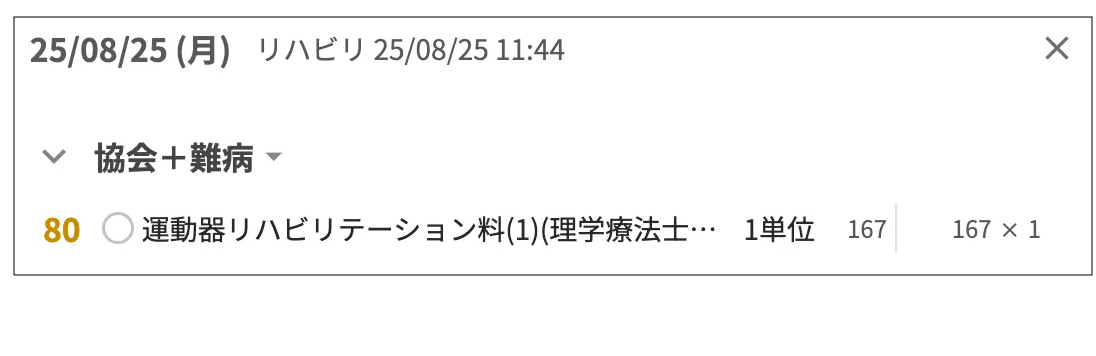 算定している診療識別80(80 リハビリ、精神ほか)の項目と