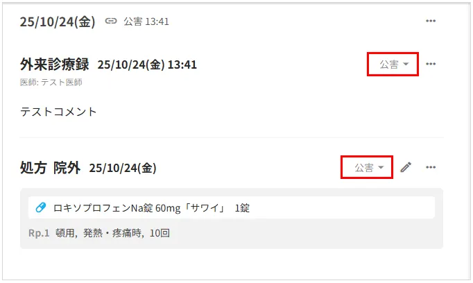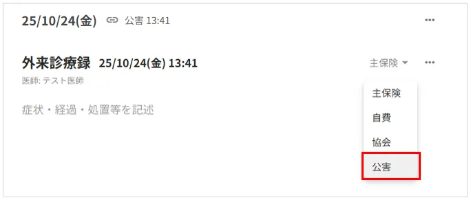 公害登録を行った患者様は、外来診療録の保険で「公害」を選択できます