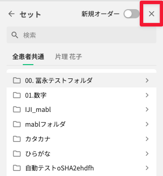 ※尚、トップのフォルダにいる場合は、従来通りセット選択画面を閉じます