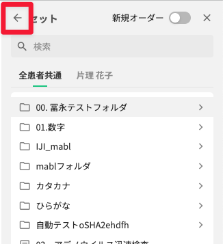 旧来の外来カルテのセット内では、「←」がセットを閉じる操作でした