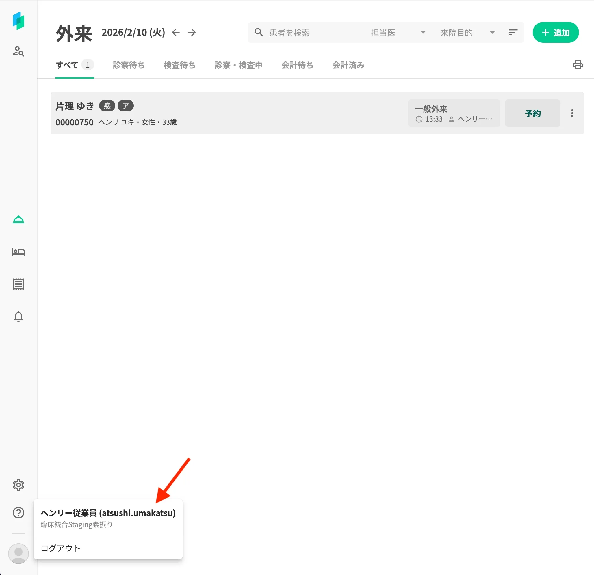 人アイコンをクリックすると、「ログアウトしますか?」という確認画面が表示され、