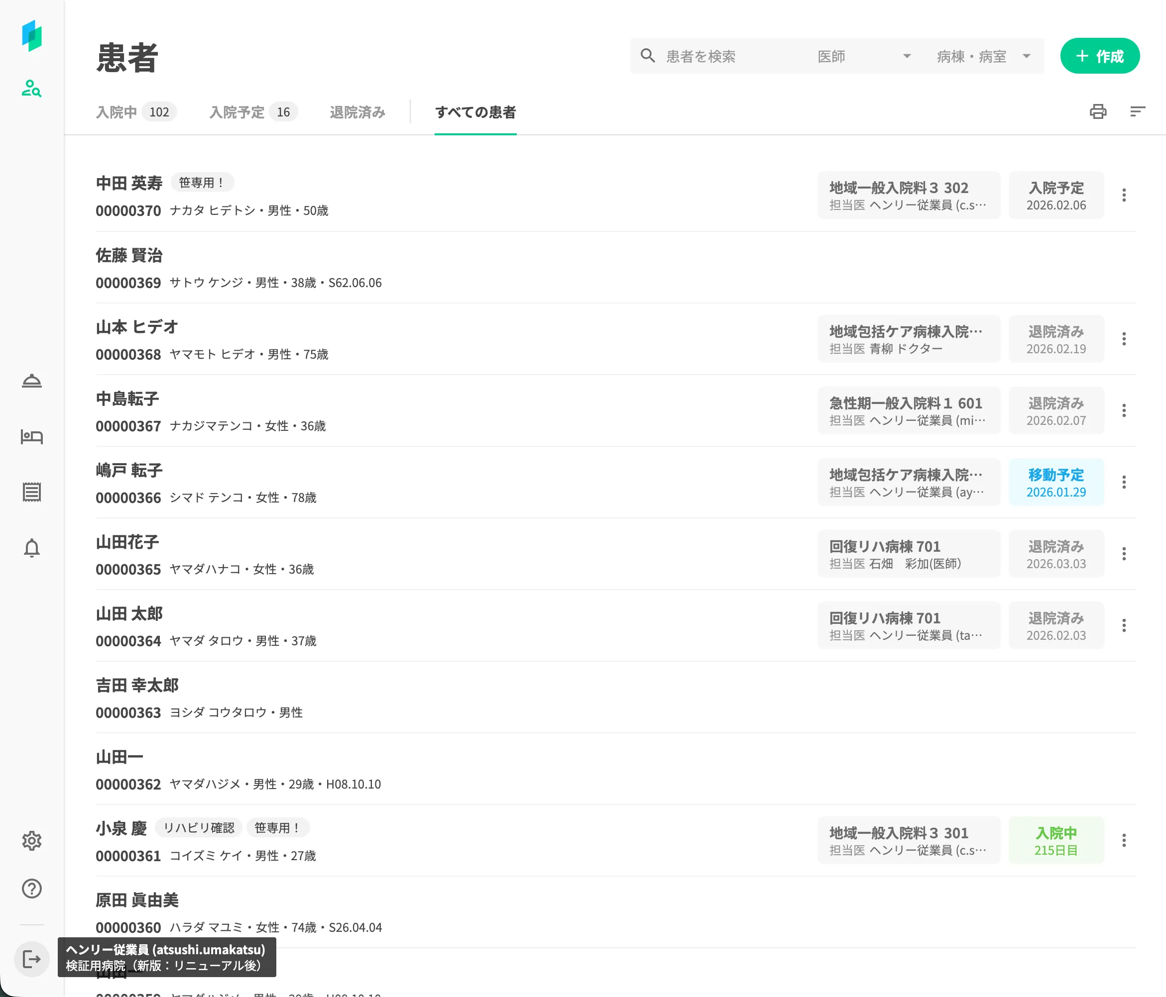 画面左下の人アイコンにマウスを当てると、メニューが表示されます