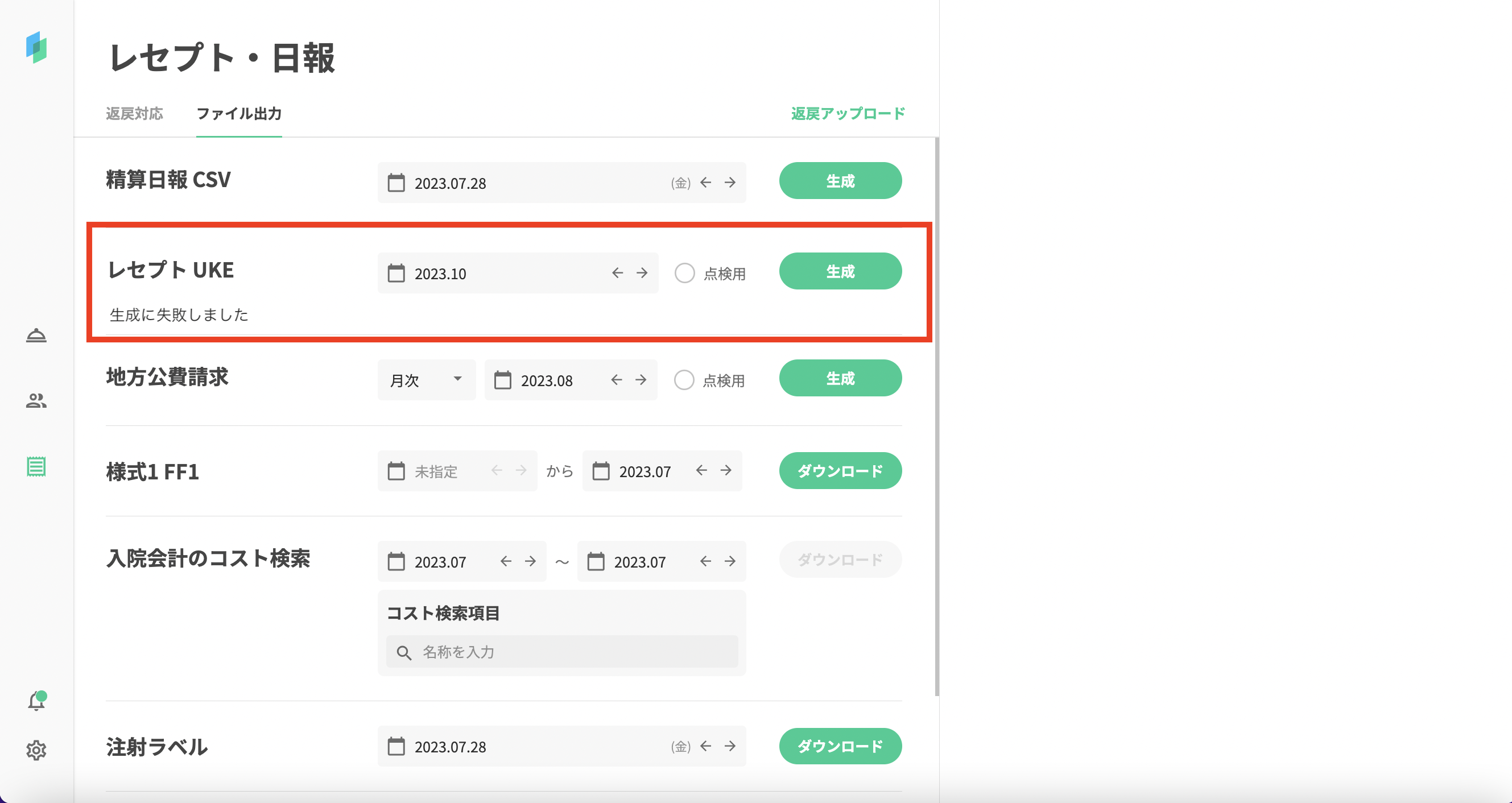 分析画面で「UKEを生成」ボタンを押してレセプト作成しようとしたら「生成に失敗しました」と表示される