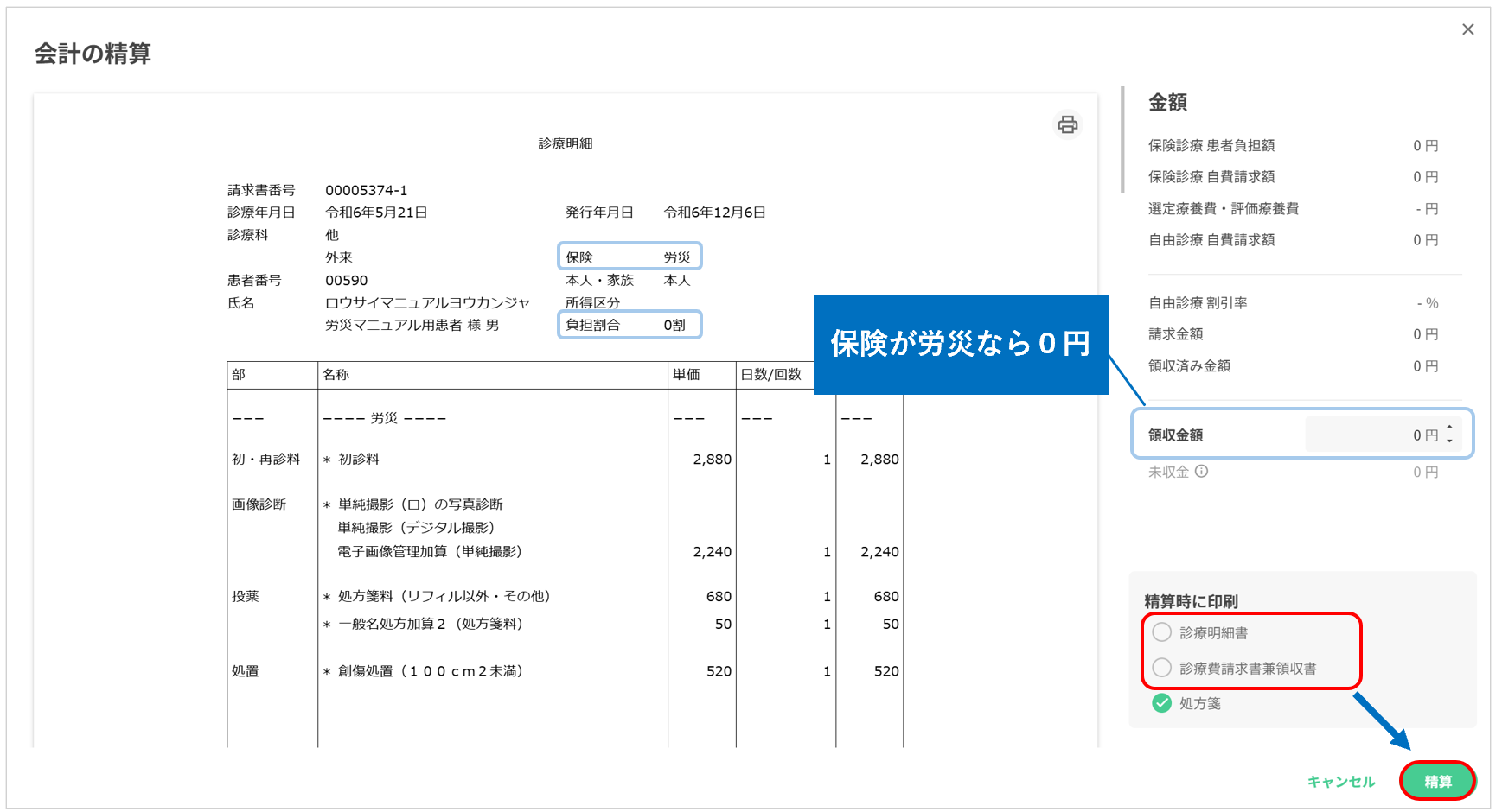 ※明細書は上記+保険外診療が出力されます。