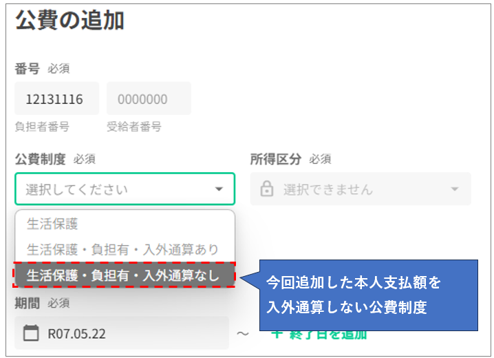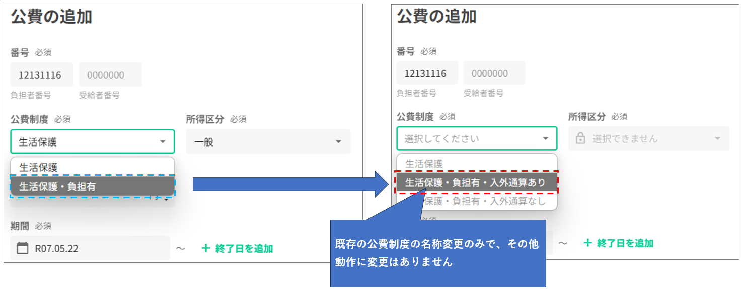 生活保護・負担有]を[生活保護・負担有・入外通算あり]に変更いたしました。