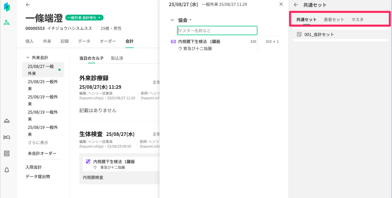 【医事課】[2025/09/10]【外来】 会計用セットで患者専用セットが共通セットと別れて表示されるようになります