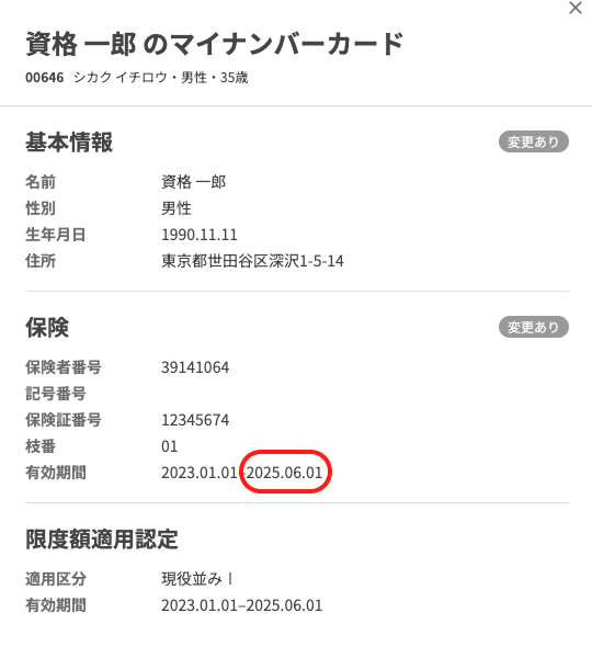 概要本リリースに伴い、オンライン資格確認を行った際、保険の資格終了日についても表示し、患者の保険情報確認がより分かりやすくなります。本リリース以降 オンライン資格確認の際、保険の資格終了日が表示されます。今までオンライン資格確認の際、保険の資格取得日のみ表示し、有効期間の終了日の表示がありませんでした