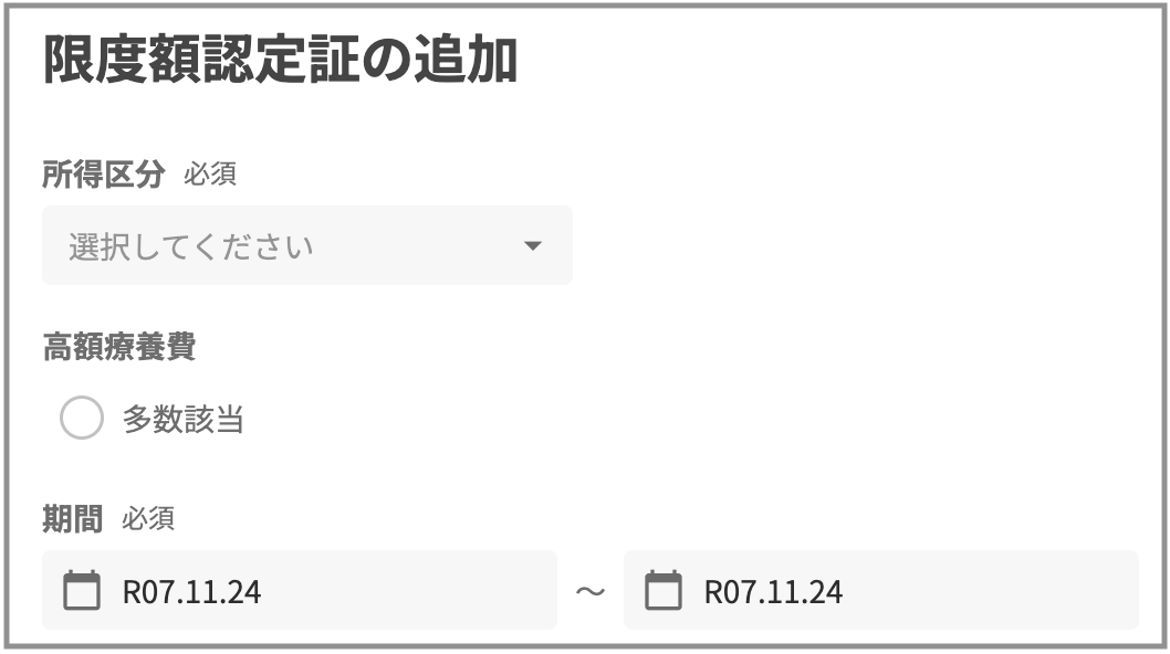 ・限度額認定証変更後: その月の「月初(1日)」と「月末」が自動で表示される