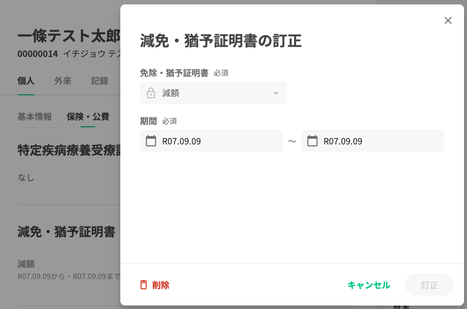 本機能は「保険・公費」タブに表示の全項目で利用可能です。