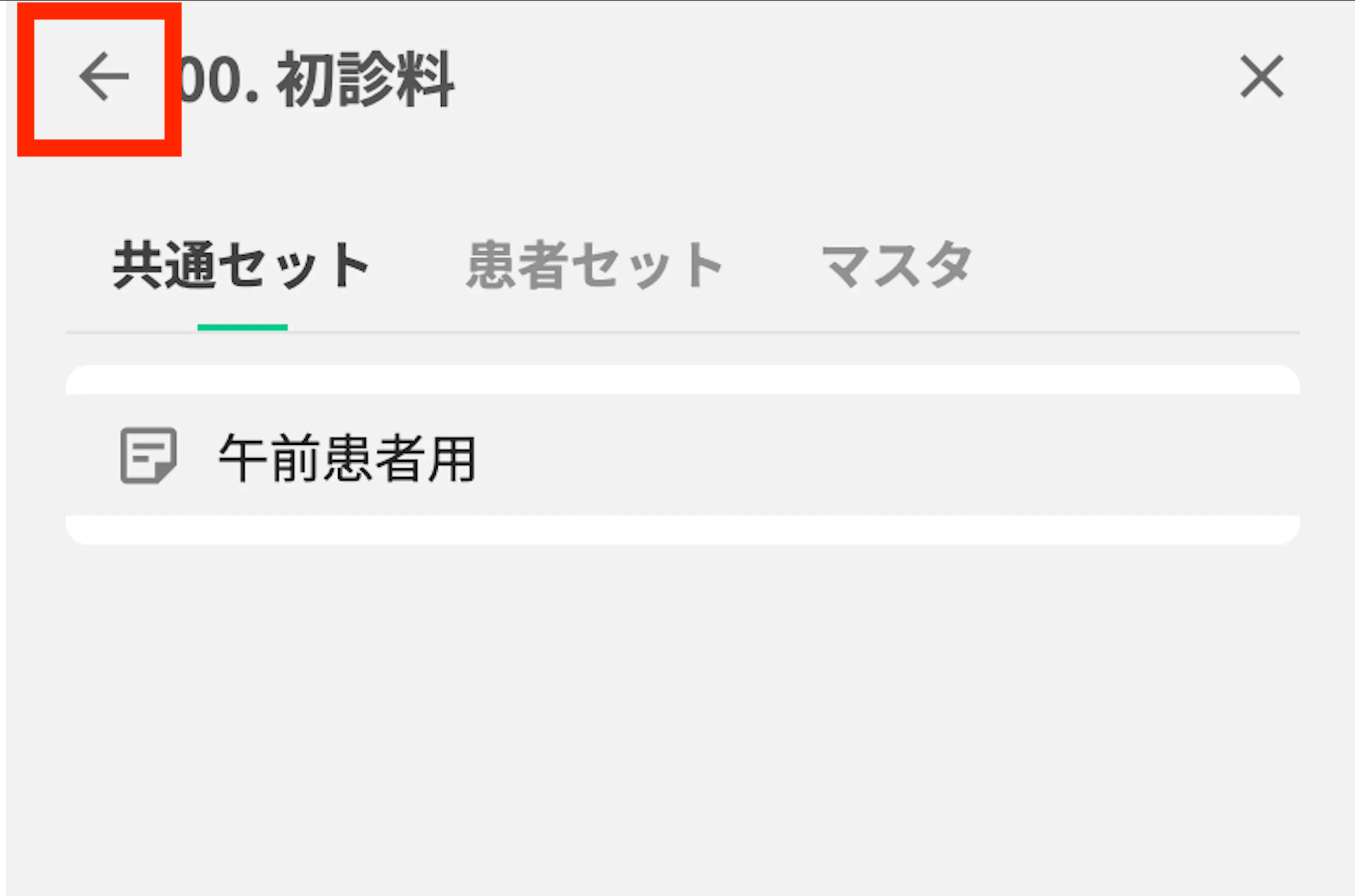外来カルテのセットにおいても、両機能(1つ前に戻る操作、選択画面を閉じる操作)をサポートしています