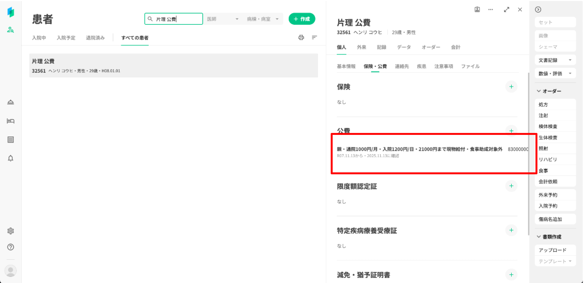 患者個人の保険・公費の一覧では、公費の名称が長い場合にはレイアウトが崩れる不具合を解消します