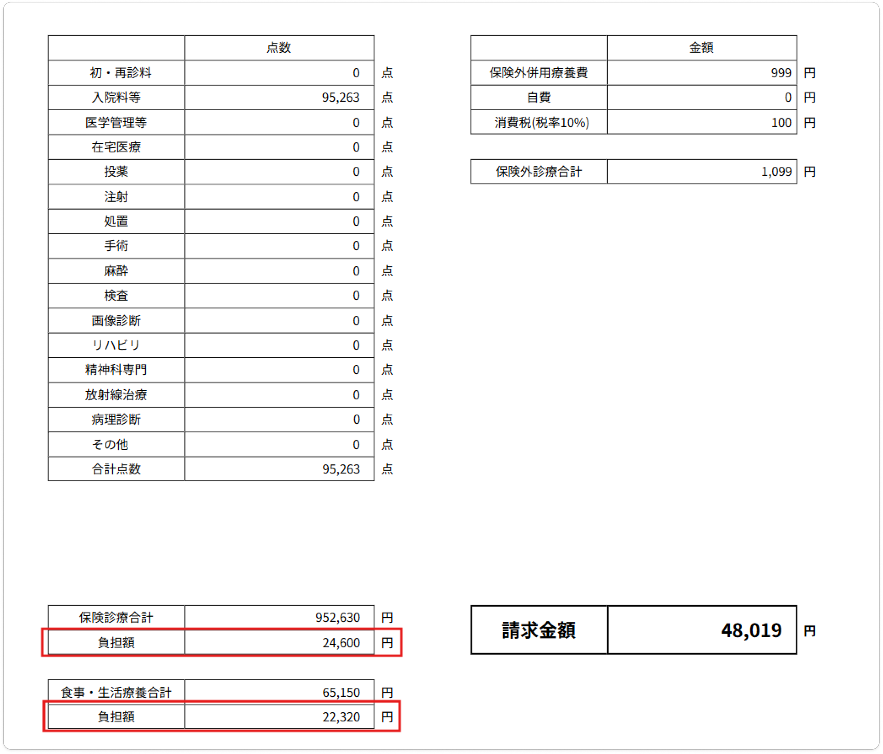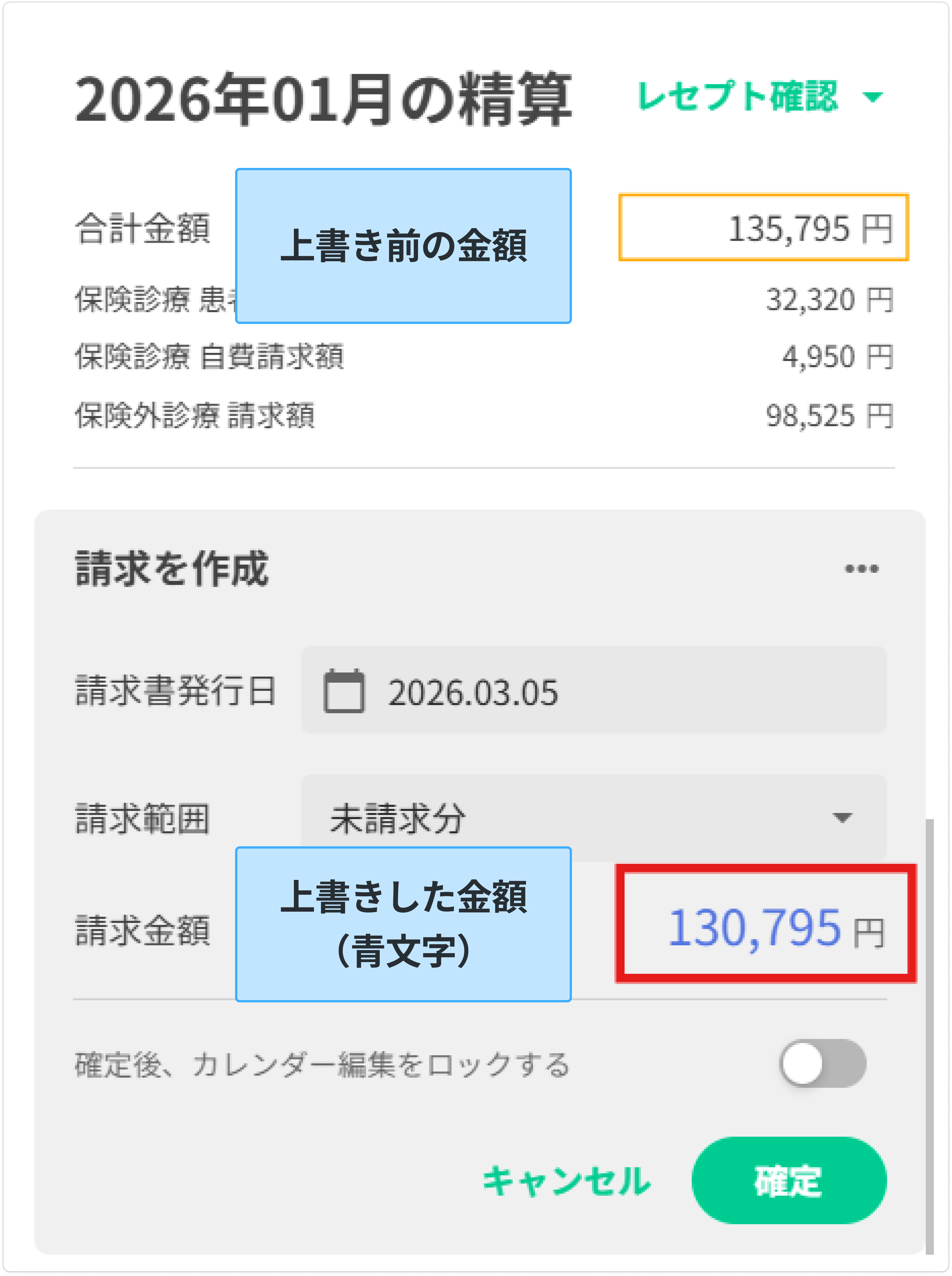 保険外診療合計は表示のみで上書きできません