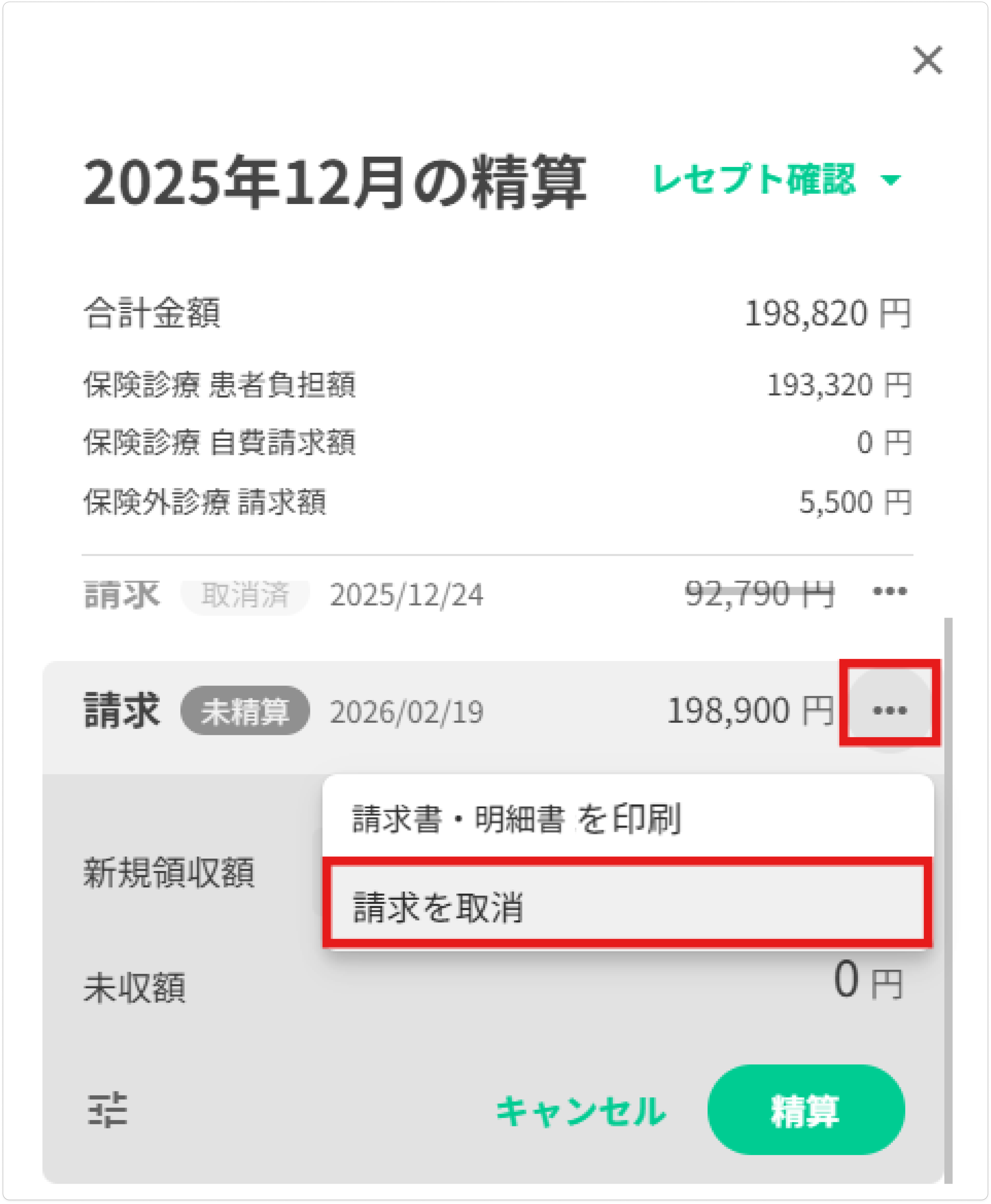 請求確定後に上書きを取り消して、上書き前の自動計算結果に戻したい場合は、[請求を取消]を実行し、再度請求を作成しなおしてください。