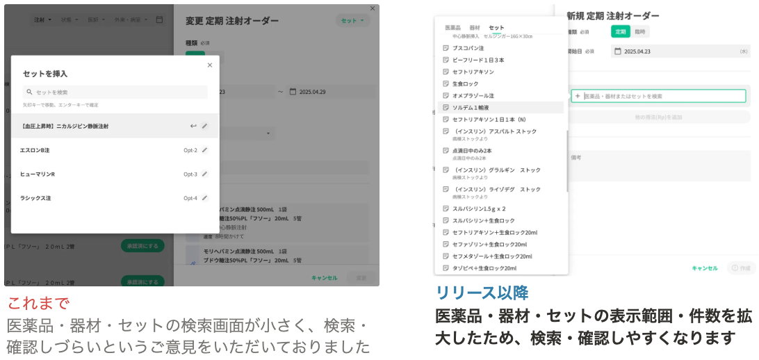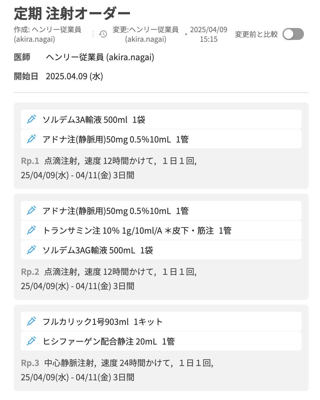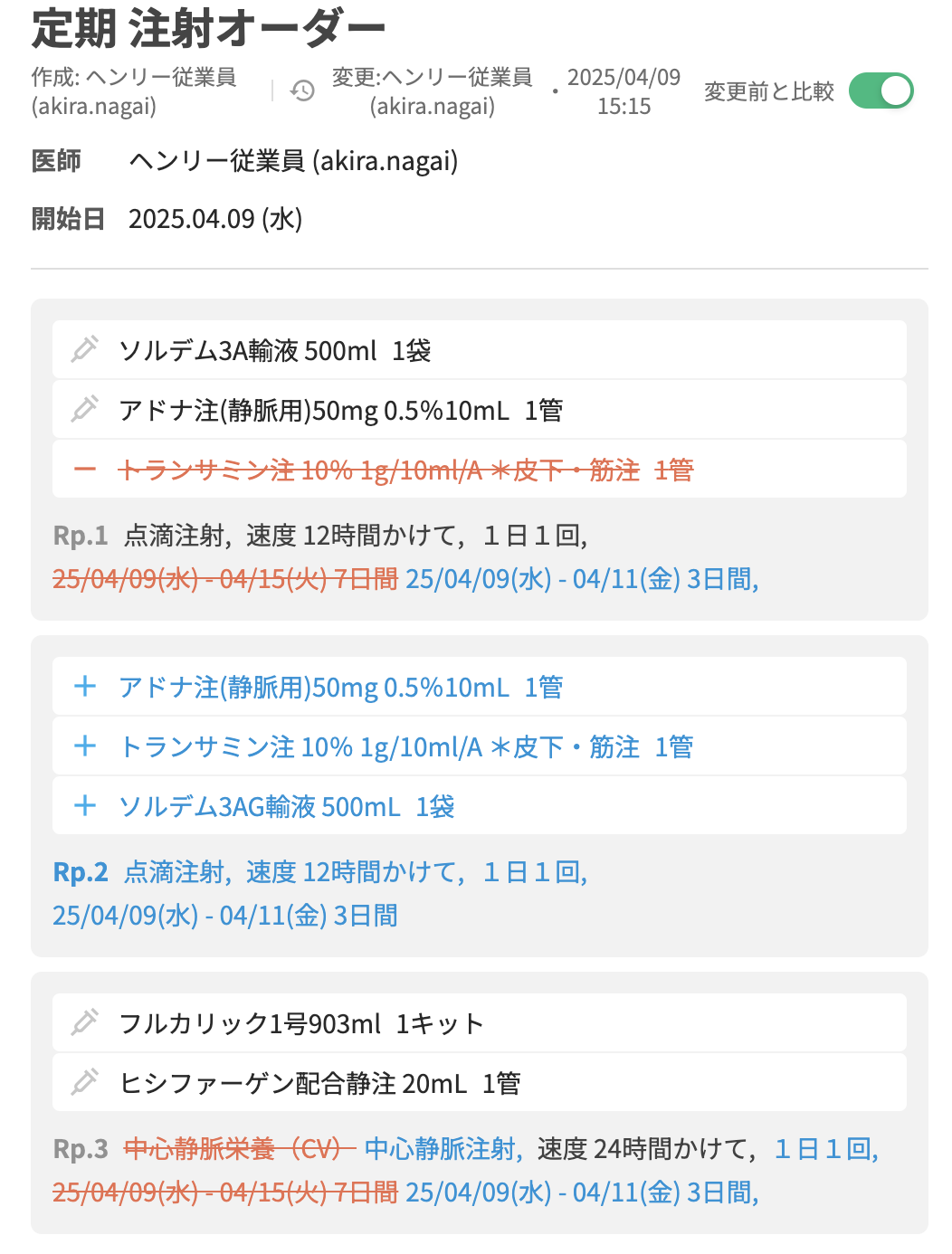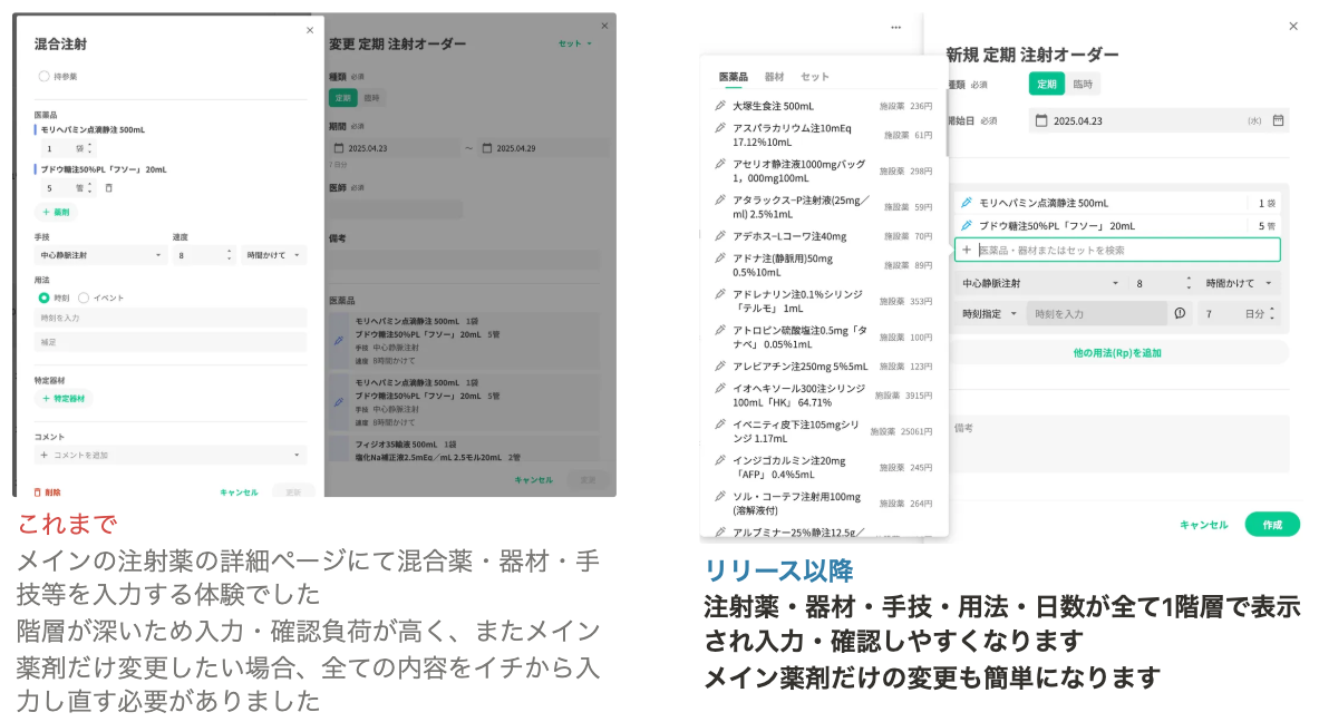 注射で頻繁に発生する「一部の薬剤のみを変える」などの入力の手間が減ります