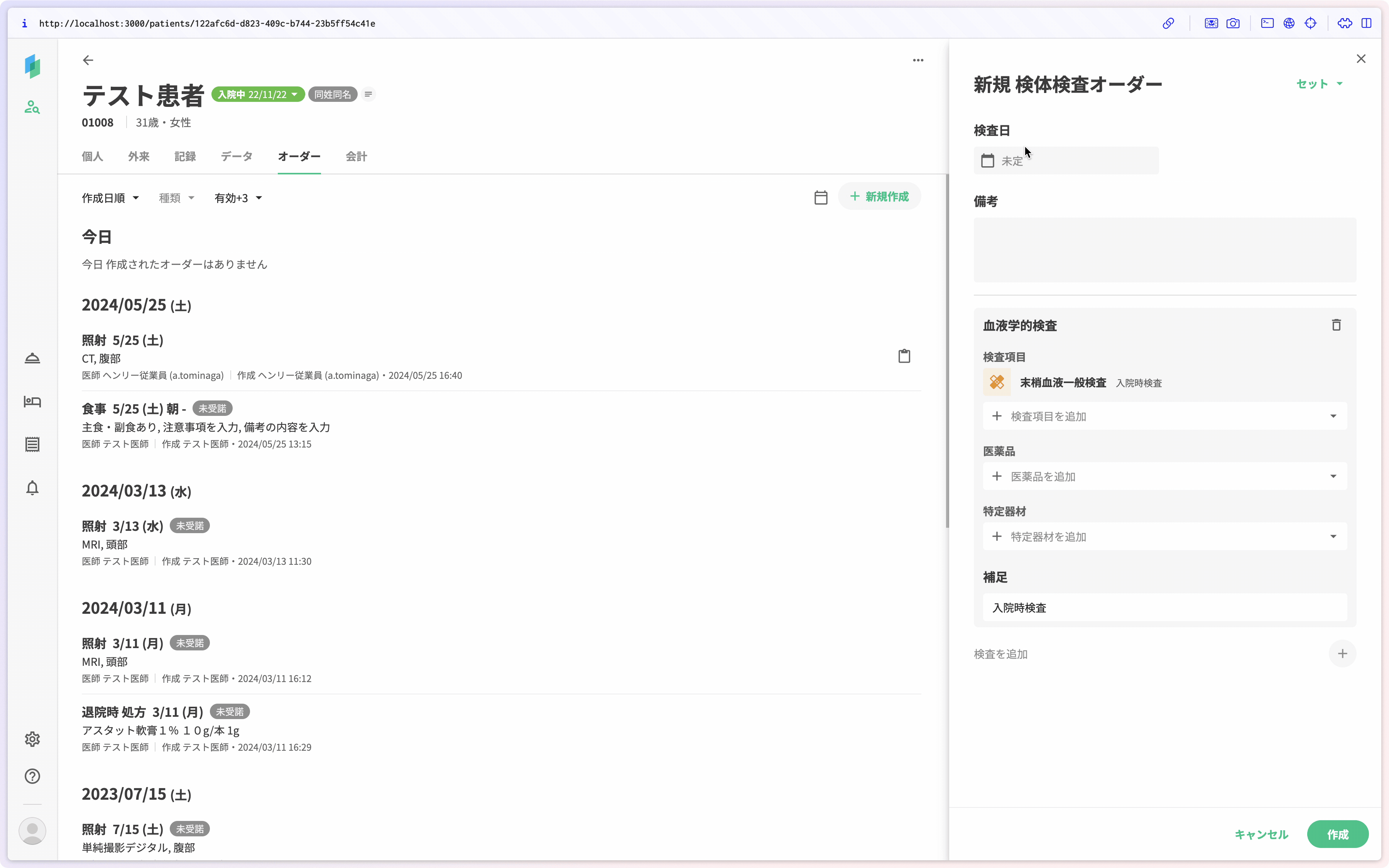 今回のリリースで、1つのオーダーに複数の同一の検査種別が追加できるようになります。