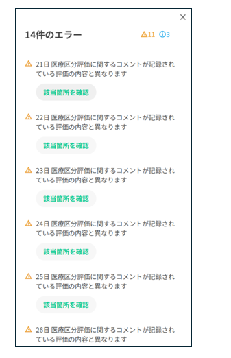 該当患者がコスカレのエラーパネルに表示されている場合は、医療区分評価表の再チェックが必要です