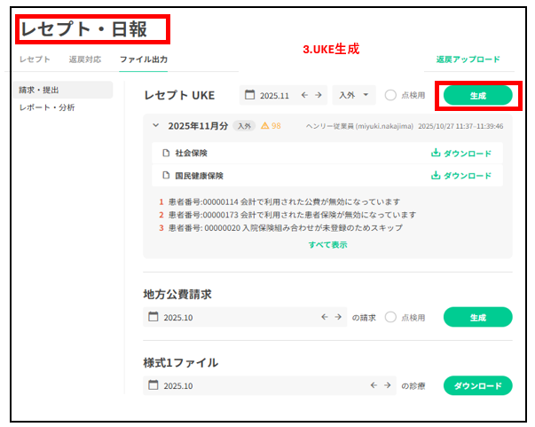 上記の操作を行ってもUKE生成でデータが反映されない/レセプト一覧でエラーが表示される場合