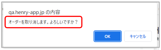 ⾃動算定されたコストはオーダーを削除しても⾃動消去はされません。メッセージに従い⼿動で「削除」または「算定しない」へ変更してください。