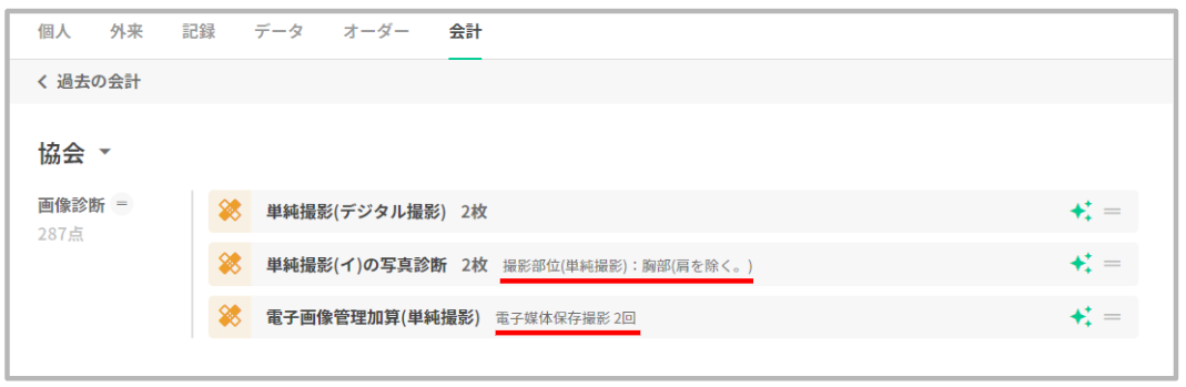 写真診断料や電⼦画像管理加算はオーダーの内容に応じて適切なコストが⾃動算定されます。