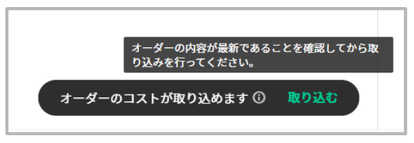 連携元のオーダーが編集された場合は、再度「オーダーのコストが取り込めます」のメッセージとともに「 取り込む 」ボタンが表⽰されます。