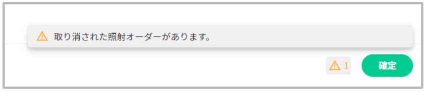 ⾃動算定された後に連携元のオーダーが取り消された場合は、「取り消された照射オーダーがあります」と警告メッセージが表⽰されます。