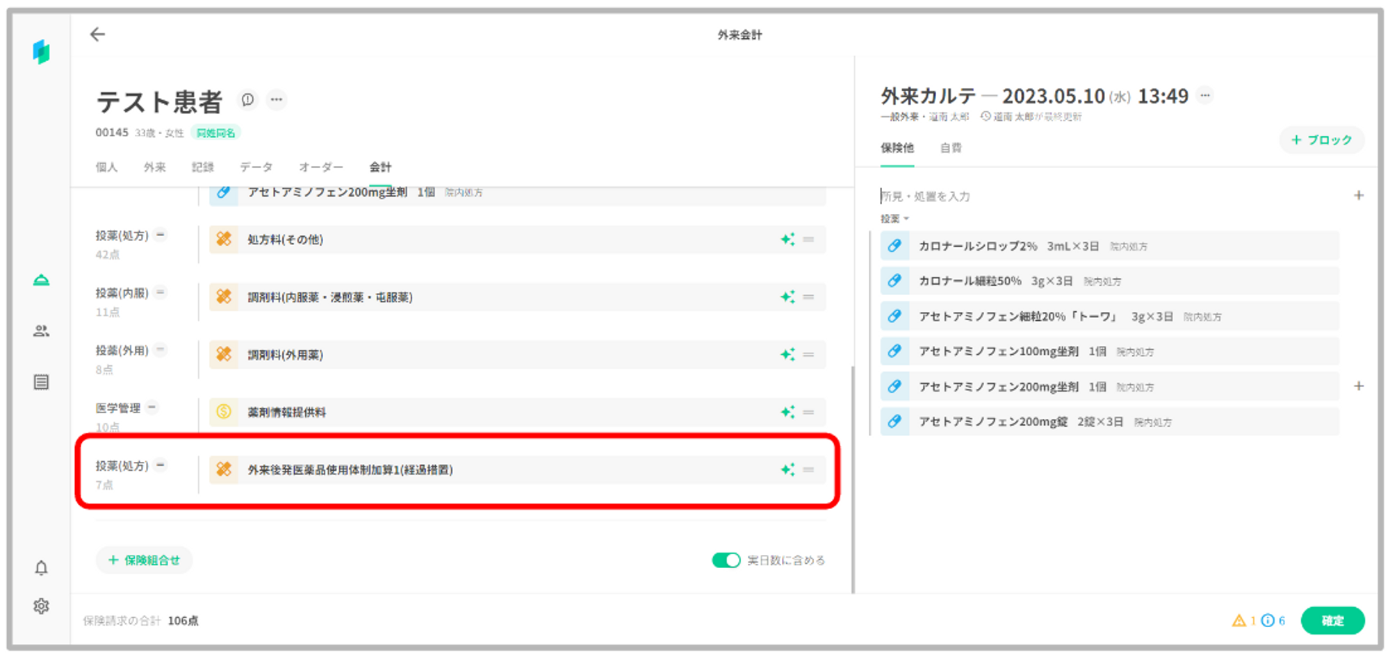 院内処方が出された場合、施設基準に応じた加算が自動算定されます。