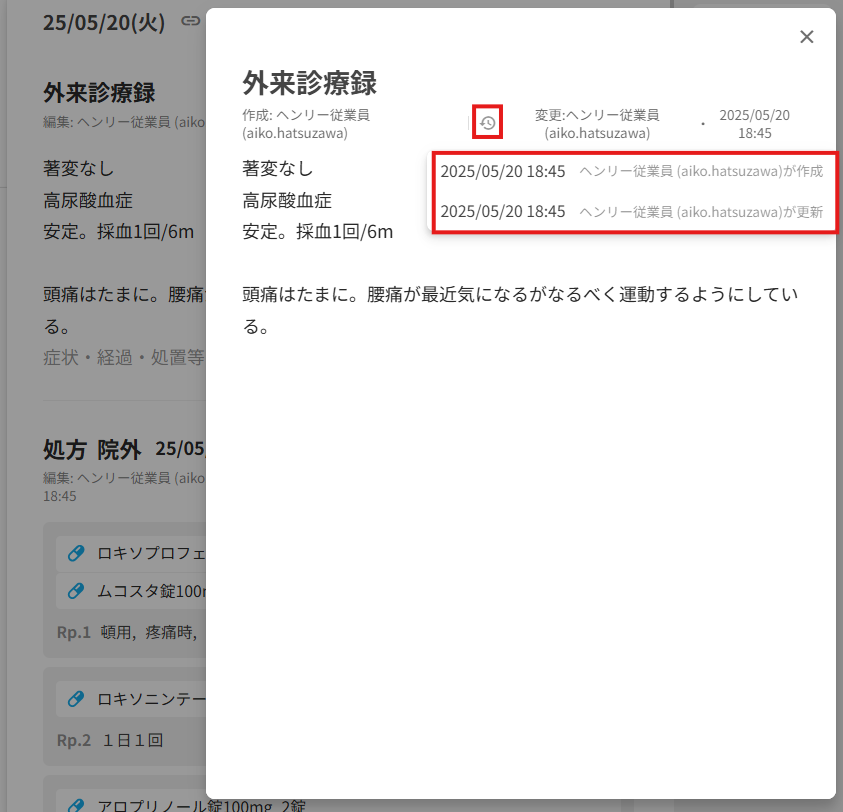 Doした診療録は直接上書き・削除・追記等の編集ができます。