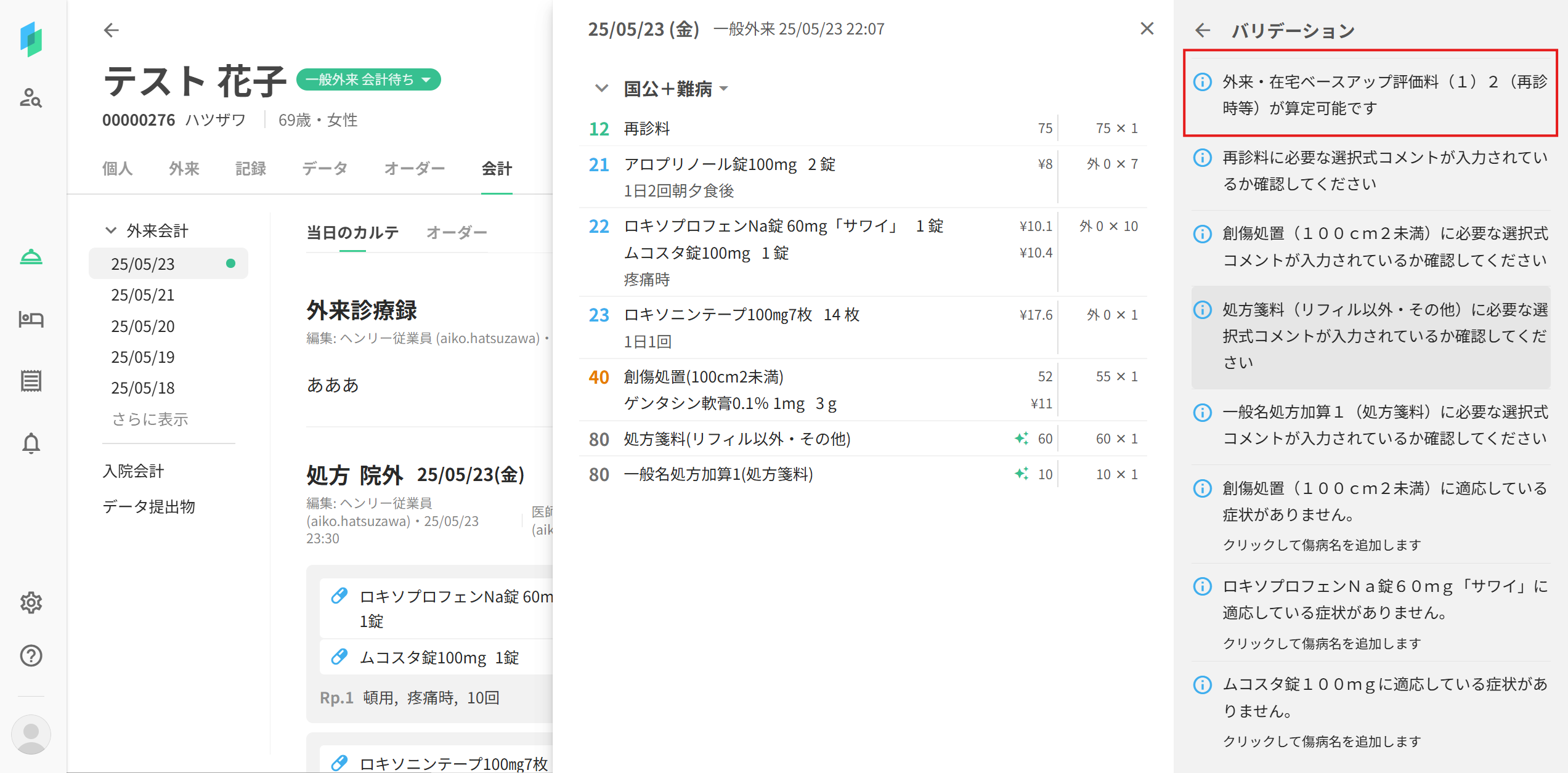 実際の業務を想定した、受付~診察~会計までの一連の流れを、サンプル患者を例に説明します。